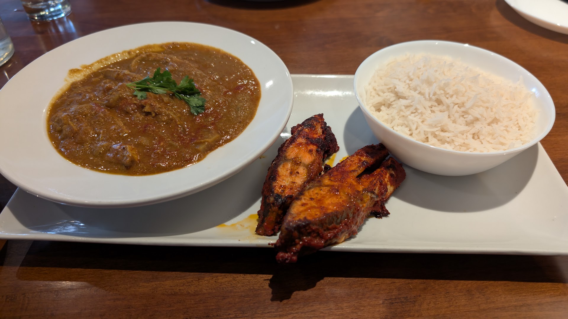 Our waiter seemed kinda peeved that we had come in and wasn't particularly genial. Our side dish of tomato pulao came in a bowl with some rice spilling out and looking "half-eaten"... totally a turn off. Not exactly high-end by any stretch of imagination.