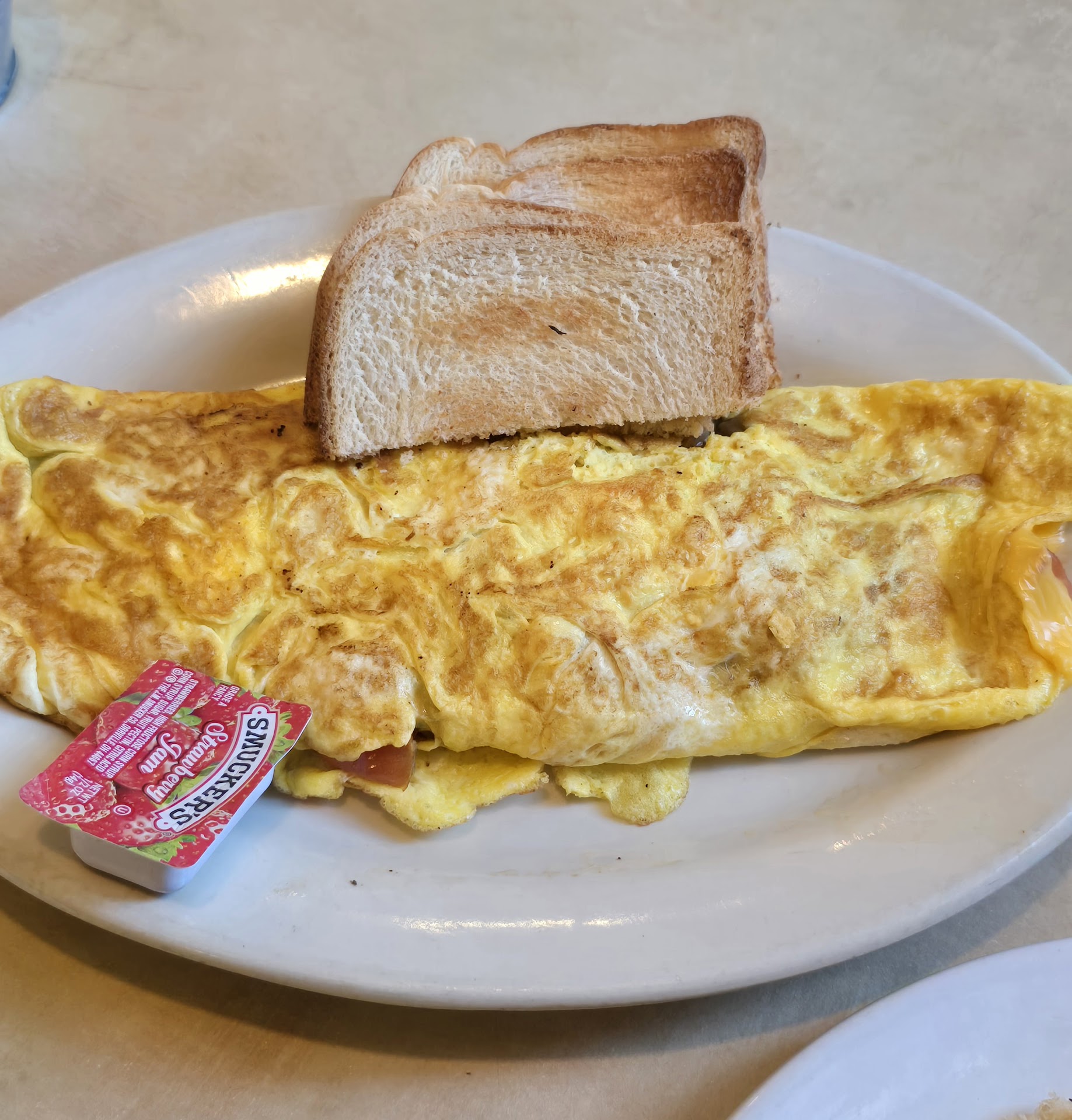 I have feeling that the type of people that go here aren't looking up reviews. In which case, I'll just be talking to myself here. Don't mind me. We were tile to seat ourselves. The place was dirty so there weren't a lot of options to sit. I finally was able to make it work between a booth and a nearby table. The staff saw me trying to figure my life out and never once volunteered to help us get seated and to clean up the previous people's mess. I asked for a decaf coffee and the waitress said she didn't have any even though it was listed on the menu. Finding the restaurant in the parking lot is an adventure as well. But besides that, the food was pretty good and so...