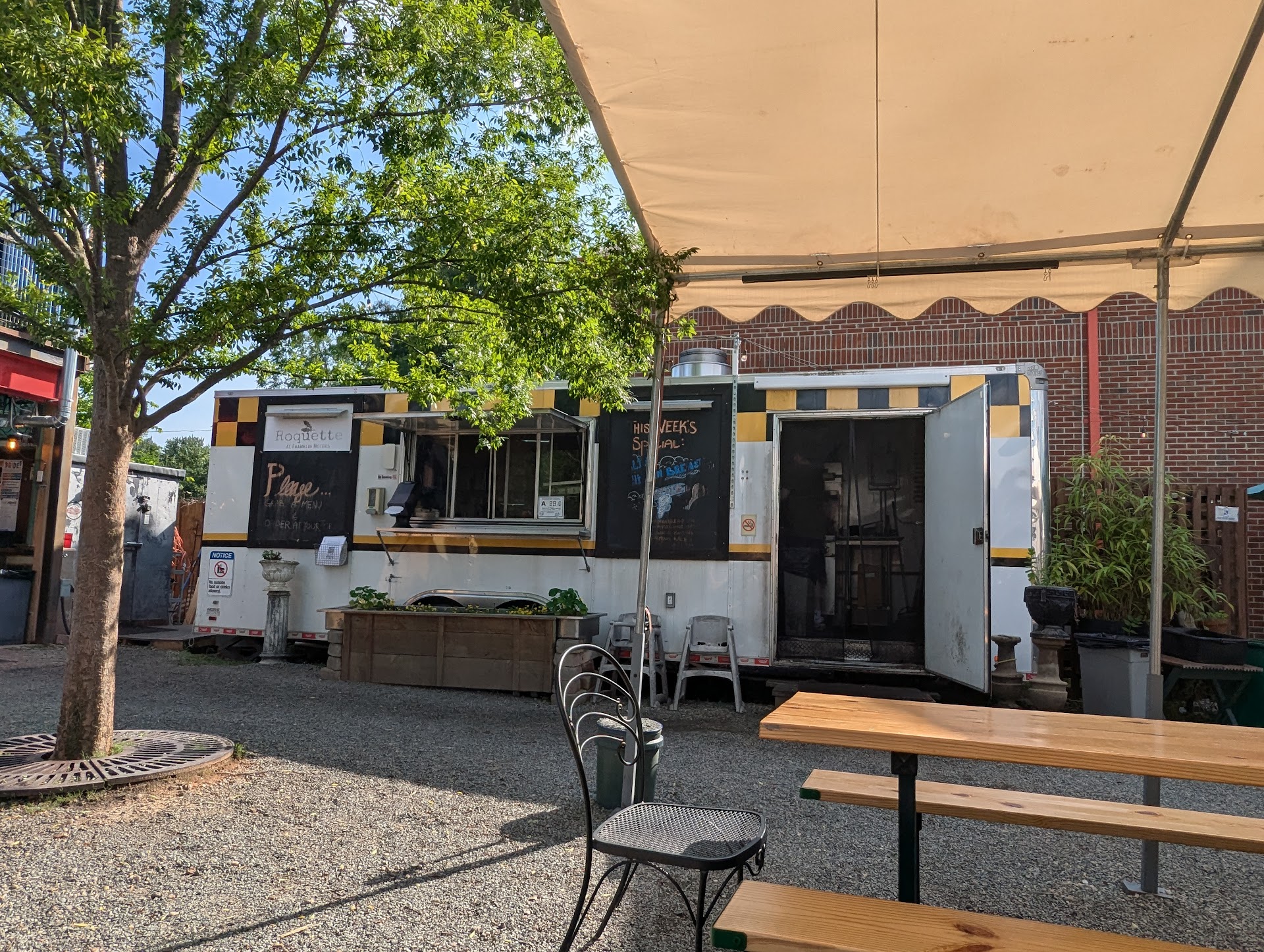 Btw, I was told Franklin Motors is a bar. Where you get your food from is a food truck and the name of the food truck is Rougette (I believe). But I guess they are somehow...