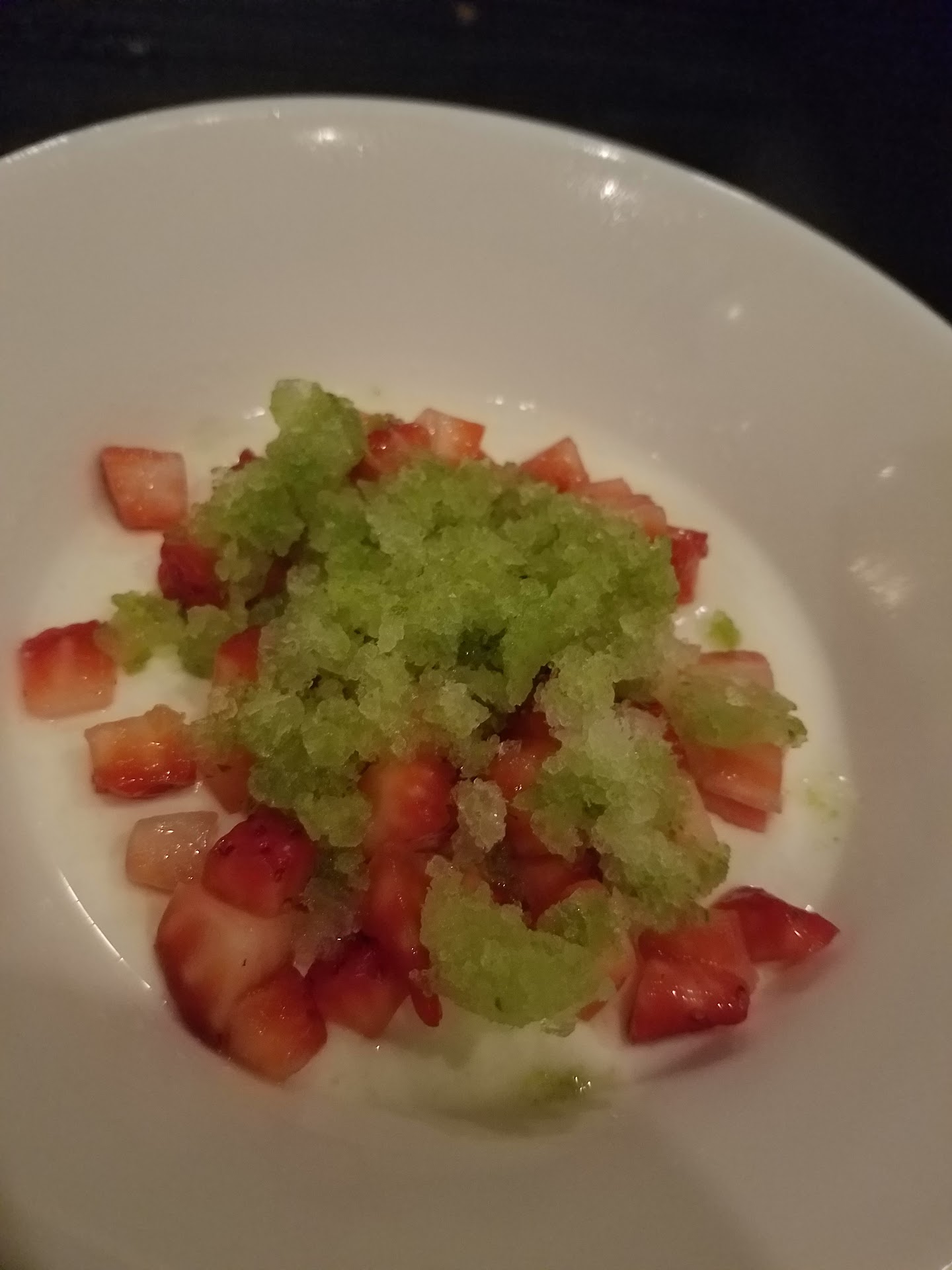 Read moreWe were happy patrons of this restaurant until recently. Our last experience involved very slow service and flippant attitudes. The food was just ok. Took a while to place our order, and our waiter was very lascadaisical. We loved the old fried olives and pickles app., which was one of the only reasons we selected Hawthorne instead of Metro 8 (whose service we find to be exceptional to this day), but were informed the app was removed from the menu just because, despite being popular with diners (the waiter informed us, "yeah people come in asking for it all the time.") We dined for a birthday. We hoped to try one of the dessert trios after dinner, but, alas, that was removed from the menu also. (The trios were awesome. You received a nice sized sampling of 3 desserts. Just enough after a filling meal.) As neither of the desserts available appealed to us, we figured we'd make due with the bday dessert that used to be provided in the past-a slice of cake I believe it was. This time, the waiter (who forgot we were celebrating a birthday and who didn't offer to until after we requested it) brought out a comical gelatin like, candy sized piece of sweet that tasted horrible (see picture). Seemed like a cheap gesture for an upscale restaurant. (We wound up enjoying a delicious dessert at Metro 8 across the street.) The atmosphere at Hawthorne feels very different now. For a fine dining establishment, and for the amount paid for our experience, we were very disappointed in the service received. Finally, had we known about the incident involving the patron and the disrespectful manager from a couple years ago, we would have never returned here. We firmly believe that the staff of any business is a direct reflection of ownership. Anyone with the gall to speak to a paying guest that way must be part of a culture that values money over customer satisfaction and chaos over common sense dispute resolution, or else they would have know better, in our opinion, than to behave that way. We will not...