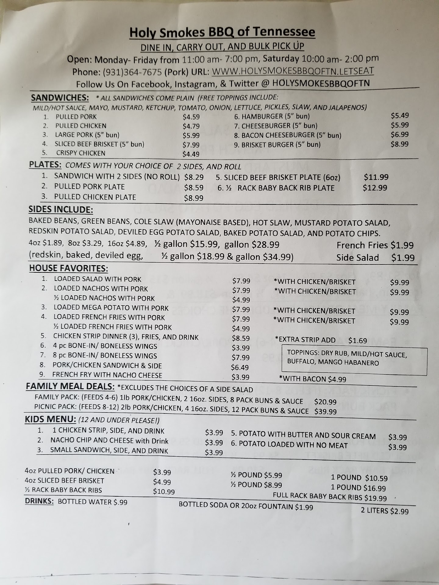 Read moreApparently the menu on the website isn't updated. I still ordered the party pack to feed 12-15 people for family during a difficult time. Price 54.99 is now 129.96 wow what a big jump in price. Had the conversation placed the order was asked to call back after lunch rush to pay not once during our conversation she didn't mention of a huge price increase. I called back at 2pm paid in full. Called back a few minutes later to ask if the order could get paper plates & plastic ware because the funeral home doesn't supply. I was told of a price increase but would talk to the owner. I told the guy to forget it that across the street is a dollar general. Very disappointed đ I hope the food is good and everything accounted for. Geez...