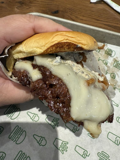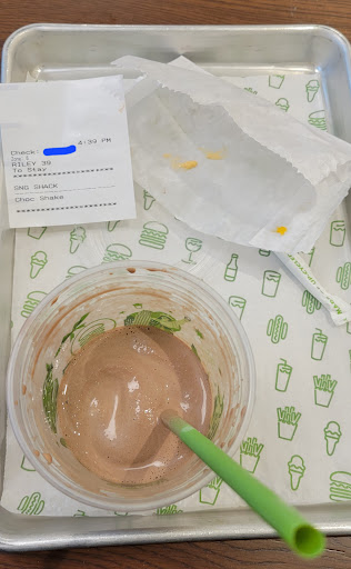 I got a Shackburger (basically a cheeseburger with a mayo-based sauce) and a chocolate shake. I'll give some advice to the management: