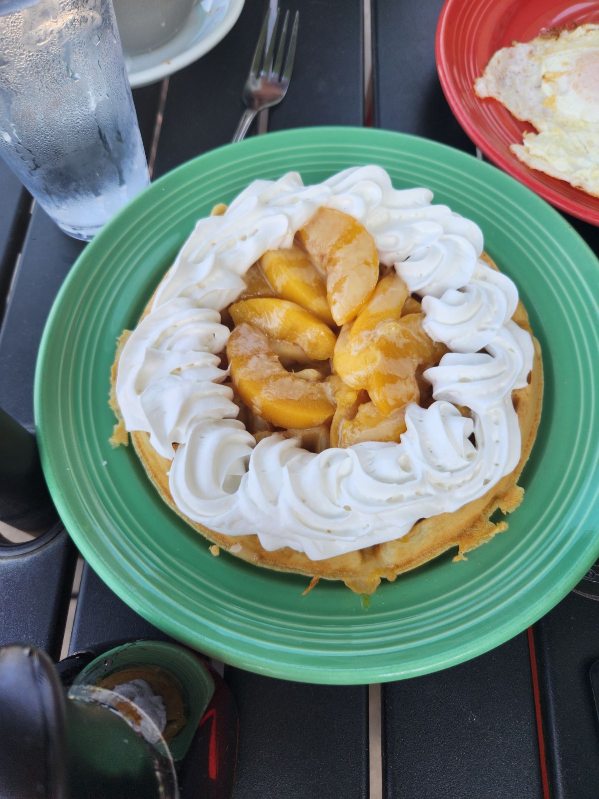 After our food arrived, it was tough to flag down our waitress. She disappeared for long stretches of time so I had nearly finished my meal before I could find her again to ask her to refill the empty maple syrup container on our table.