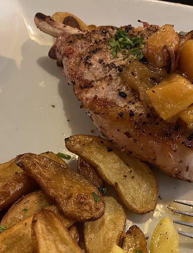 Entrees were Flank steak and goat cheese, Tomahawk pork chop (2), and Smoked Bruschetta Chicken Pasta. Highs marks on all.