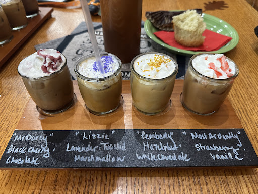 Read moreUpdate: This has slowly become my favorite local coffee shop. Seems like they worked out the kinks. The atmosphere is my favorite, great service and great coffee. I love their creative flavors and flights. So, I hate to leave a less than stellar review for a local spot. But I tried the same drink 3 different times, and each time it was wrong. Listen, all I get is a latte with some caramel drizzle. No milk alternative, no foo foo la la stuff. Espresso, steamed milk, caramel goo. One time the milk was barely warm, one time it tasted like the forgot the espresso, and the third time it tasted burnt (but still wasn't hot). It makes me sad, honestly. They are so nice, and the updating since the monks left is refreshing. Maybe I'll try something...