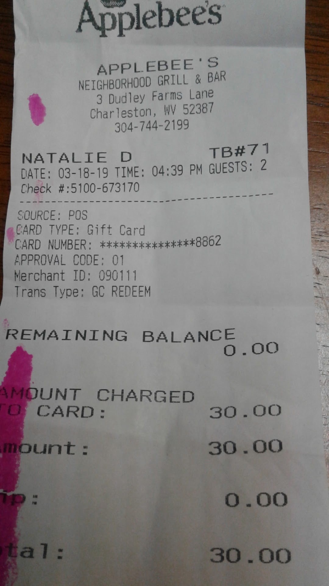 Ā Ā Ā Read moreIt was my bday yesterday, so my family & I chose Applebee's for dinner.. primarily because their Mac&Cheese w/ Honey Pepper Chicken Tenders had always been one of my favorite meals. So good, even my husband ordered the same. I asked the server who took my order over the phone if we could add extra honey pepper chicken tenders on both orders, he said yes but that there would be a surcharge. I proceeded to tell him my daughter's order, which was the Riblet plate with loaded mashed potatoes. He said it would cost extra for the loaded. I said okay. When my daughter returned home with our food she was given plain French fries rather than loaded mashed potatoes, and rather than extra honey pepper chicken tenders, we were given plain original chicken tenders in a to-go container. Both pasta meals were incredibly dry, lackluster all the way around. It's basically 15 bucks for a giant bowl of noodles with no sauce or flavor. There's usually tons of leftover pasta, which was why i ordered extra honey pepper chicken. It was always my favorite meal, and on my bday at that.. yes I was a little disappointed. Especially when the worker repeated my order back to confirm everything was...