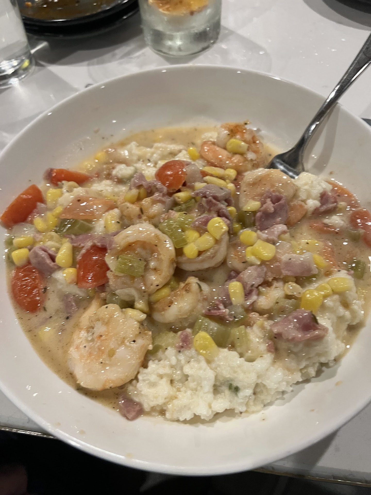 I will start by saying that our server was in an impossible situation tonight. I think she needs coaching on how to deal with a situation like that. The location was impressive and the concept should work. But it didnāt. Now the food was OK. My group of seven coworkers ordered several appetizers and multiple different entrĆ©es and cocktails. the sliders were good, but not outstanding, I didnāt try the eggs because youāre welcome. Green tomatoes were pleasantly crispy, but lacking flavor. The brussels sprouts were cooked well and the sauce was tasty, but there was just way too much of it. I had the shrimp and grits and iād say that it was probably the best tasting thing of the night at the table. Two people had the catch of the day which happened to be halibut. One loved it. One couldāve passed. There were two orders of the lobster gnocchi, and neither one of them were thrilled with it, One had the mac & cheese with the spicy fried chicken and that was very tasty from what I understand and the other had the seared sea scallops. She was very pleased the biggest issue tonight was the length of time that everything took. We were there for well over an hour before our appetizers started arriving. I donāt mind waiting for food truly. This was out of control. Our server made excuses and blame the Kitchen which Iām sure was the real problem but thatās just not something you do. Donāt throw your coworkers under a bus. This was not a cheap dinner by any stretch, the bill was well north of $500 for seven people. I do not believe this is a restaurant I will be coming back to on my next trip...