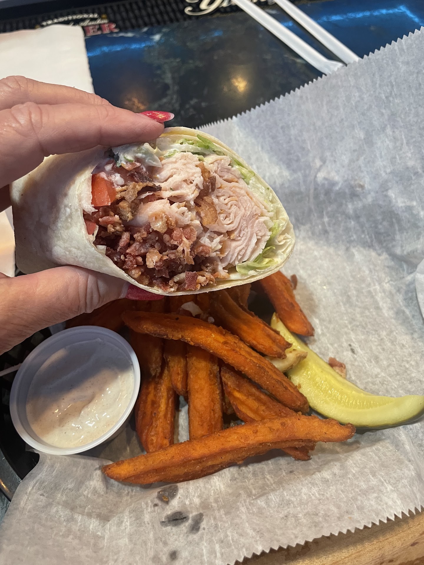 Read moreOrdered the club, which is always the best in Charleston. I also ordered a Buffalo chicken sandwich to go and got home but it was wrong. They smothered it in ranch and no Buffalo, also it was grill instead of friend but that's okay. I wiped off the ranch and added Buffalo sauce and made do. The chick was good and juicy but the loads of ranch made the buns nearly unusable since they weren't toasted or anything to help with the sauce. The bacon cheese fries are really good and so is the chick quesadilla. 99% of the time this place is a slam dunk. Overall I'm happy with it and will...