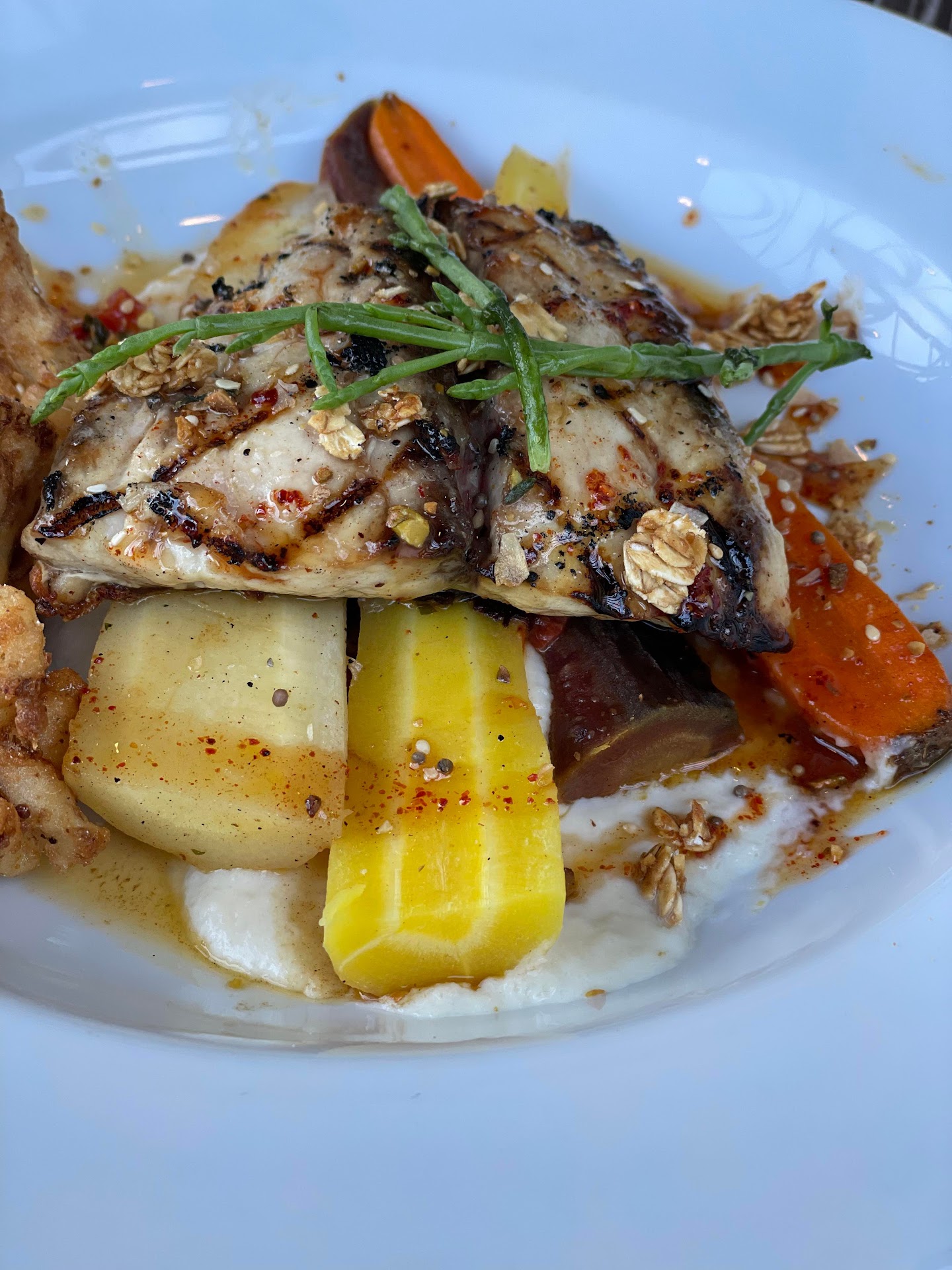 We started with the calamari. Lightly fried tender strips topped with a creamy corn sauce. There were fried pieces of jalapeño which was a nice touch. My husband had the Blu Bucatini, a great combination of fresh seafood with a delicious creamy lobster sauce. The only thing that would have made this better would have been some baguette slices, as there was a lot of sauce still in the bowl once he ate everything and what a waste to throw it out. I had the scallop fuoco, a hearty meal with Spanish risotto, fresh scallops, bacon jam and tons of flavor.