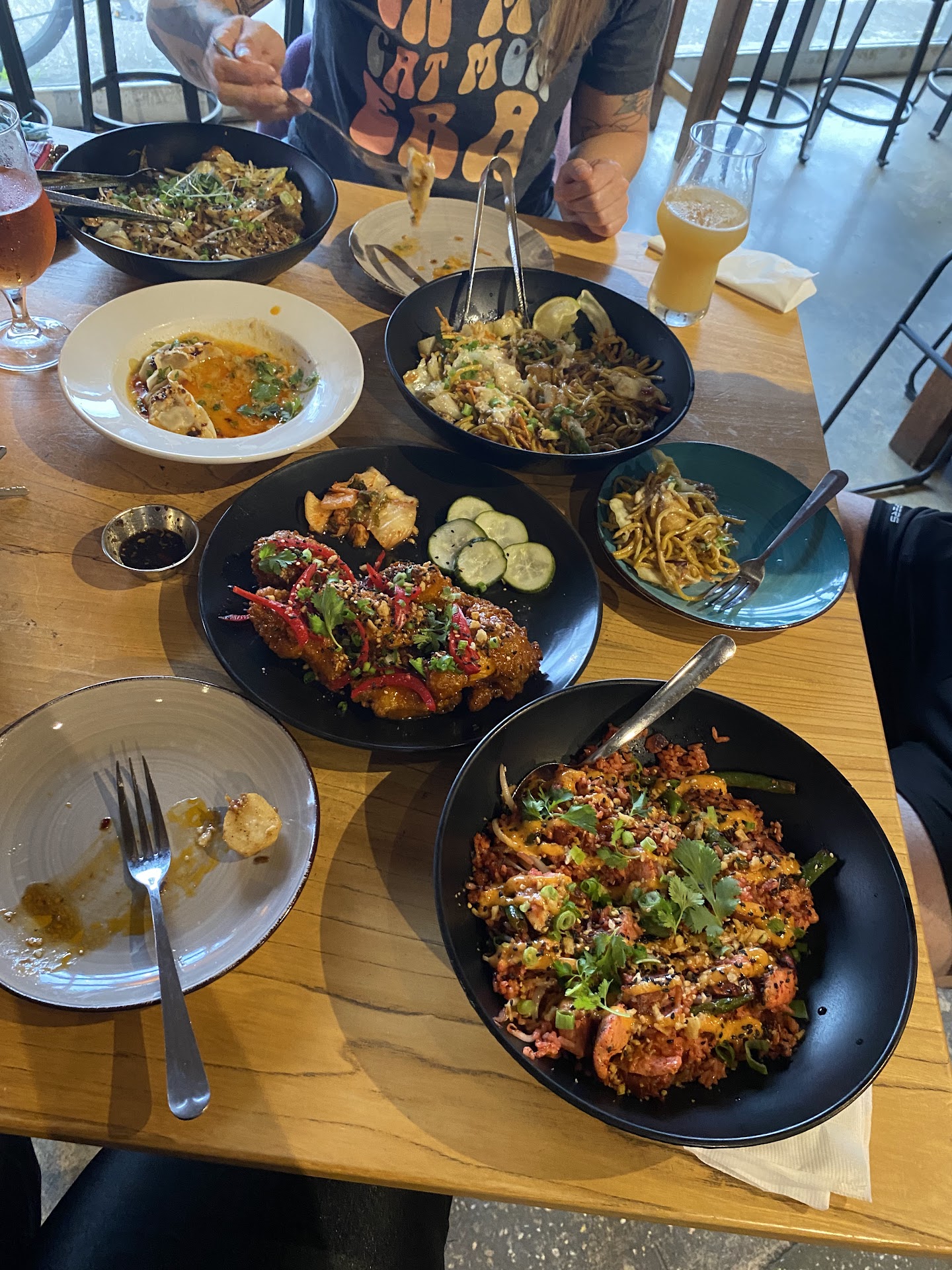 Read morePredominant flavor profile of salt. The lumpia was rolled in salt. The tocino was undercooked with no char and not sweet - just mostly salty. The chicken in the dan dan noodles tasted off (either old or recooked), the chicken wings were very salty with minimal gochujang flavor, the crab fried rice had no flavors besides salty and old crab(I like strong crab/shrimp/fish flavor but this did not taste good). I understand that it's a container kitchen attached to a brewery so maybe the excessive salt is intentional for the beer drinkers but I do not recommend if you don't drink or if you want to bring a family here. I'm mixed Filipino and was excited to try some Filipino fusion flavors but was let down. I would not bring visiting family here to try it. If you do not have asian taste buds or like to drink a lot of alcohol while eating- you might like the food. But I personally didn't and am leaving a review for my fellow Asians/Pacific Islanders that you will be disappointed if you are expecting some awesome Asian fusion flavors - the recipes are not structured for your palate. The ambiance is a laid back brewery vibe and the bar has some of the best root beer I've ever had so that bumped...