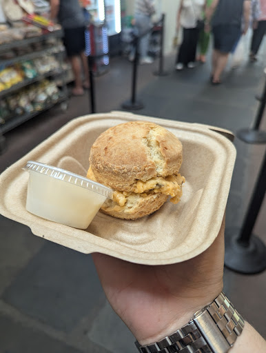 Read moreI was in town all the way from Detroit visiting family due to a death in the family. My brother and I decided to explore downtown Charleston. I've had an unusually difficult time finding good gluten free options in general, let alone the quintessential Southern fare. So, I was ecstatic and surprised when I saw y'all had gluten free biscuits available! The staff answered all my questions about cross-contamination and made me feel assured my intestines would be in good hands. Staff were absolutely amazing- great energy, cheery, and welcoming. Dealing with Celiac Disease the past 12 years I've heard all the moans and groan, eye rolls and attitudes you can imagine. The staff alone gives this place 5 stars. I wasn't even prepared for how fast and fresh everything would be. I received my biscuit promptly with a smile. I got the pimento cheese biscuit, I just had to get it, I'm in the South afterall. I wanted to try both the original and jalapeno and she graciously gave me a little of both. It was absolutely amazing! The biscuit was so buttery and delicate, the crumb was amazing! It was light, but definitely stuck to my ribs. The most authentic gluten free biscuit I've ever had. This was definitely the most satisfying and truly Southern food experience I've had since being here, and I doubt anything will top this. Thank you so much for offering gluten free items! You have no idea how frustrating it is traveling with dietary restrictions. You guys restored my faith in this area. If I lived here I'd be getting it this weekly. I'll remember to come back any time I'm in the area! Price was also pretty good! Best part is, I didn't...