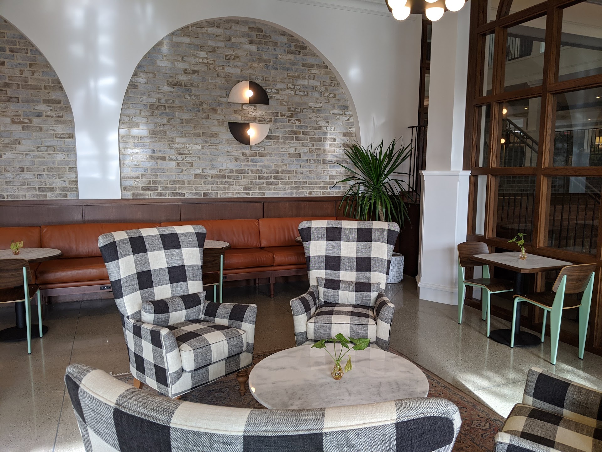 The good: Great atmosphere that's classy without being offputting. Comfortable and unique seating and lighting, with lots of space (inside at least). The baristas were very friendly and the food was great. A hearty biscuit was the highlight of a fluffy breakfast sandwich, and the coffee was on par with the rest of the experience. It's nestled right in a premium hotel, so make sure to check out the amazing bathroom haha.