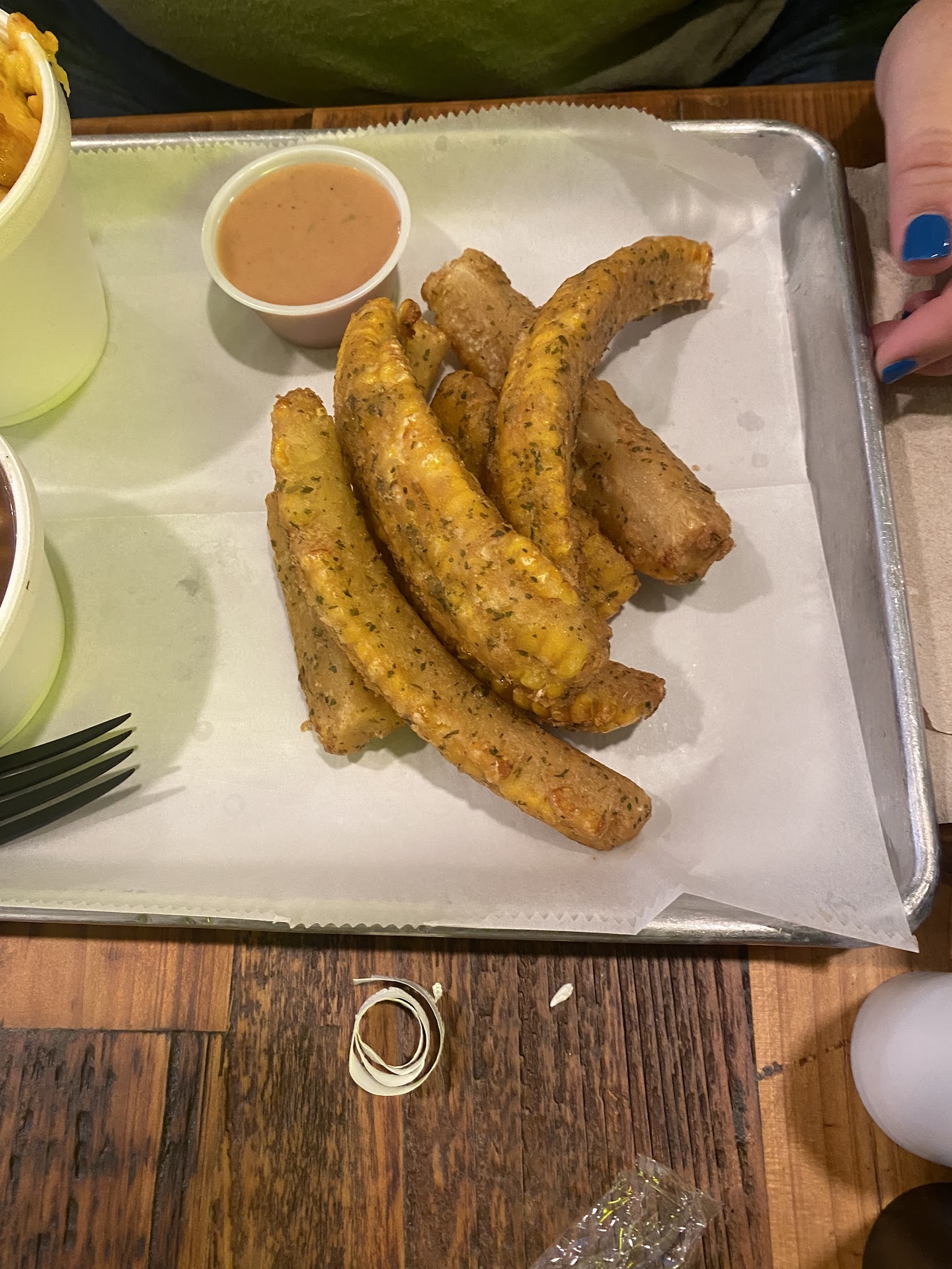 Read moreWe already loved Dem 2 Brothers and a Grill so having a location open even closer to us is exciting! Almost as exciting as the CORN RIBS for this plant based food lover! I went in for dinner with my husband ready to order a few sides for a meal, as I usually do, and then the girl taking our orders asked if I wanted to try their corn ribs. I had no idea what to expect yet it exceeded all expectations. The corn ribs were delicious and fun to eat. The dipping sauce added a nice flavor as well. I was so happy to find a new plant based food to try. Besides helping to fill my stomach and satisfy my taste buds, it made me feel cared for and thought of, something I donât often get in restaurants around here and completely unexpected from a meat centric restaurant.