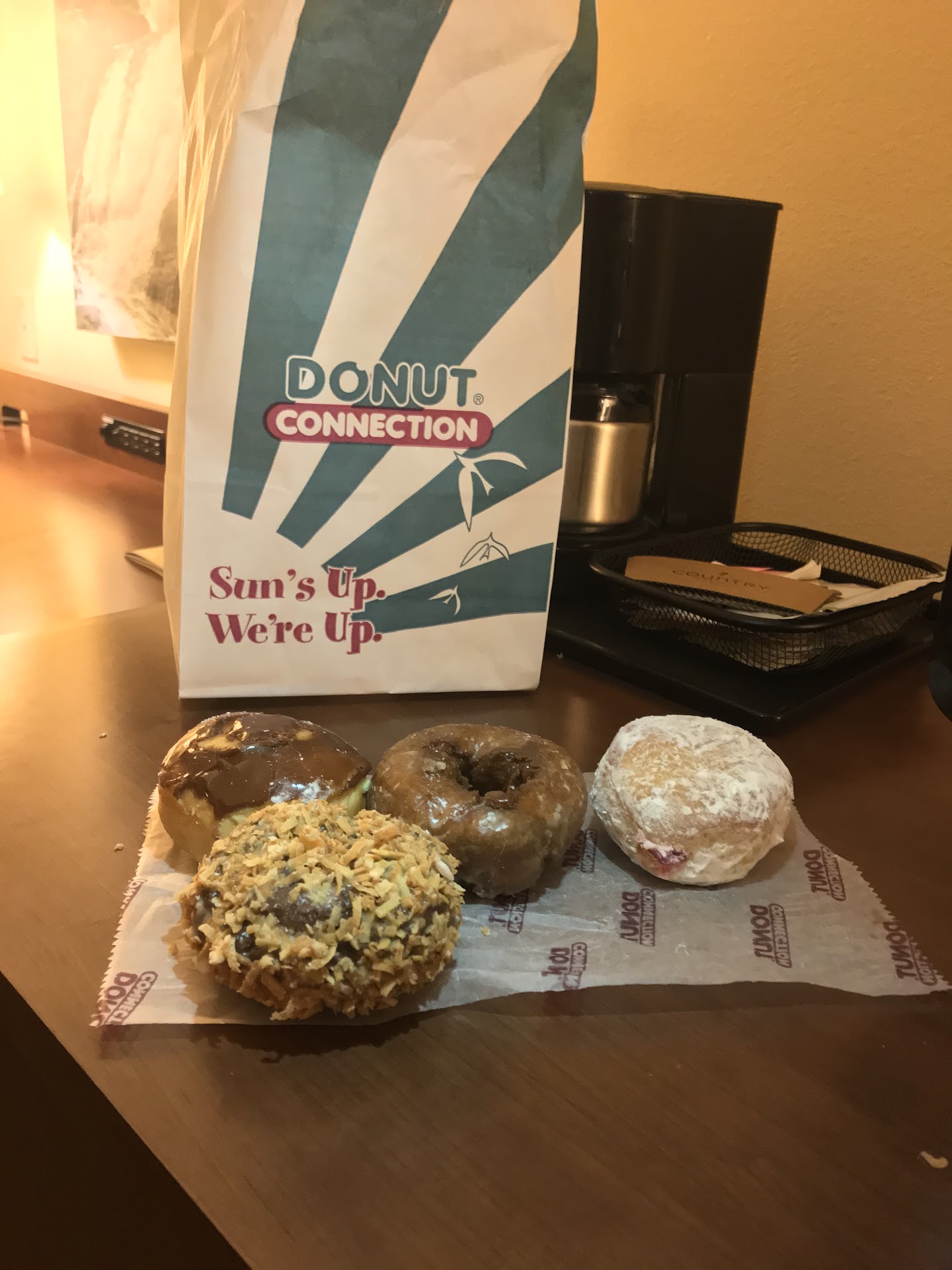 Staff was super friendly and the selection of donuts, drinks, and baked goods was impressive for the location and the exterior look. Don't be fooled by the outside.