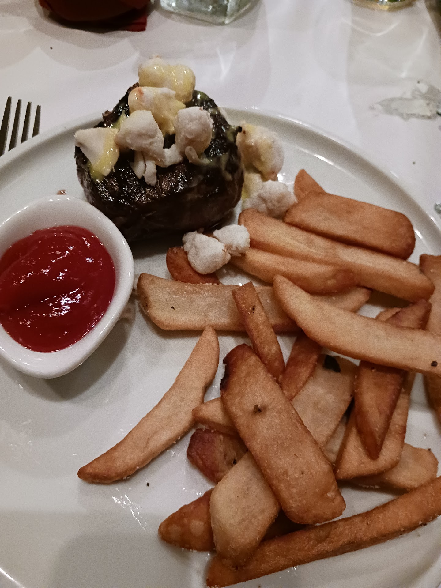 The appetizers were good, and while the soup was a bit sweet for French Onion, it was nicely topped with bubbling cheese and crisp croutons and the (unpictured) scallops were topped with a saving mango salsa yet were a wee bit undercooked and heavily coated in OB seasoning.