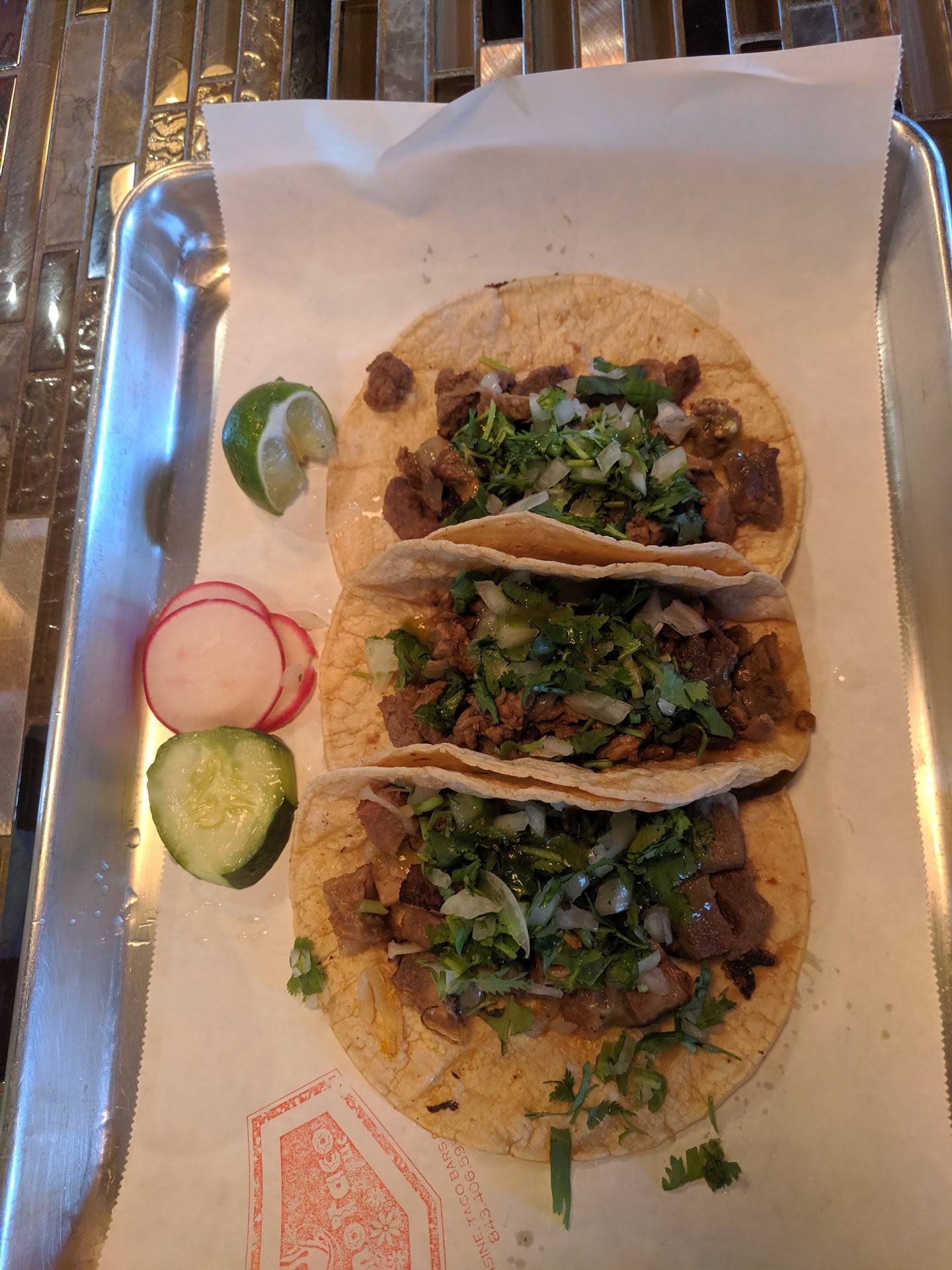 Read moreMy co-workers and I were excited to visit the brick and mortar edition of El Pincho because the truck was so excellent. We were unfortunately dismayed to realize the transition from truck to building struggle is REAL! The staff was friendly and efficient. However, the seating, cleanliness, and tacos leave a lot to be desired. We decided to do the $3 tacos and chose a variety of their offerings. I personally selected the Asada, Lengua, and Pibil. Not only could I not tell the difference between the asada and lengua but the reason I could not is because they both tasted "gamey". I am a country girl and I know the essence of game meat and I wouldn't have been surprised to find a goat or deer strung up out back after eating those tacos. I hope that we just caught them on a bad day and this isn't the trend.