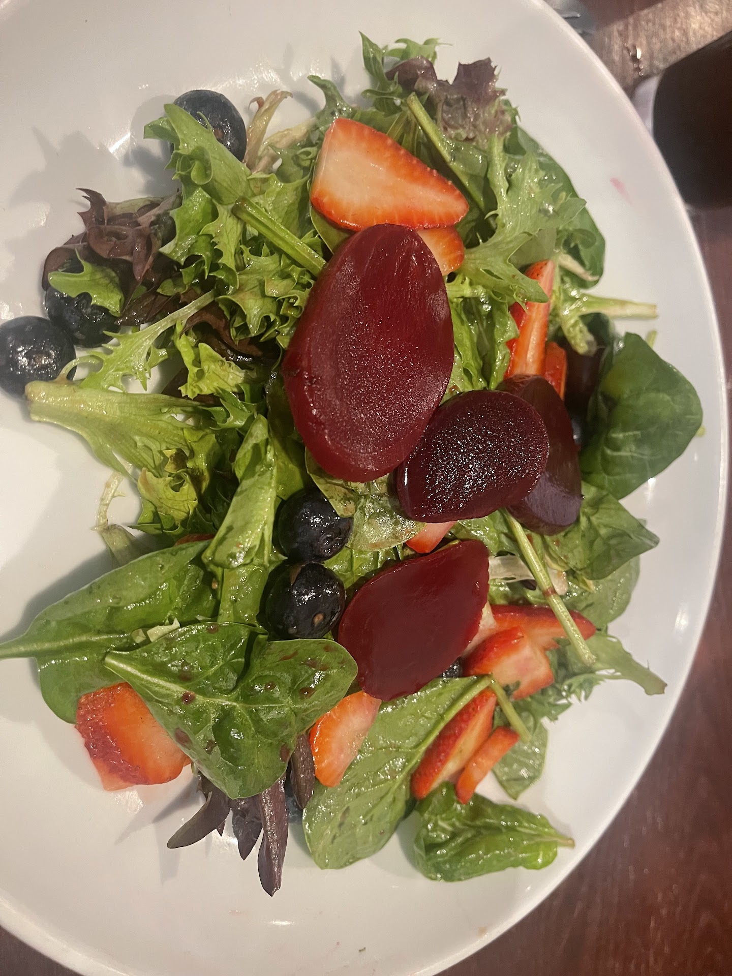 There were supposed to be strawberries for the Forager's Salad, but Sophie informed us that they were out of strawberries, nonetheless the Forager's Salad was recommended. The salad was overwhelmed by an abundance of tart blackberries. The blueberries were tasteless and mushy, and the balsamic reduction was difficult to detect - all aspects that would have offered a welcomed balance that would have complimented the blackberries.