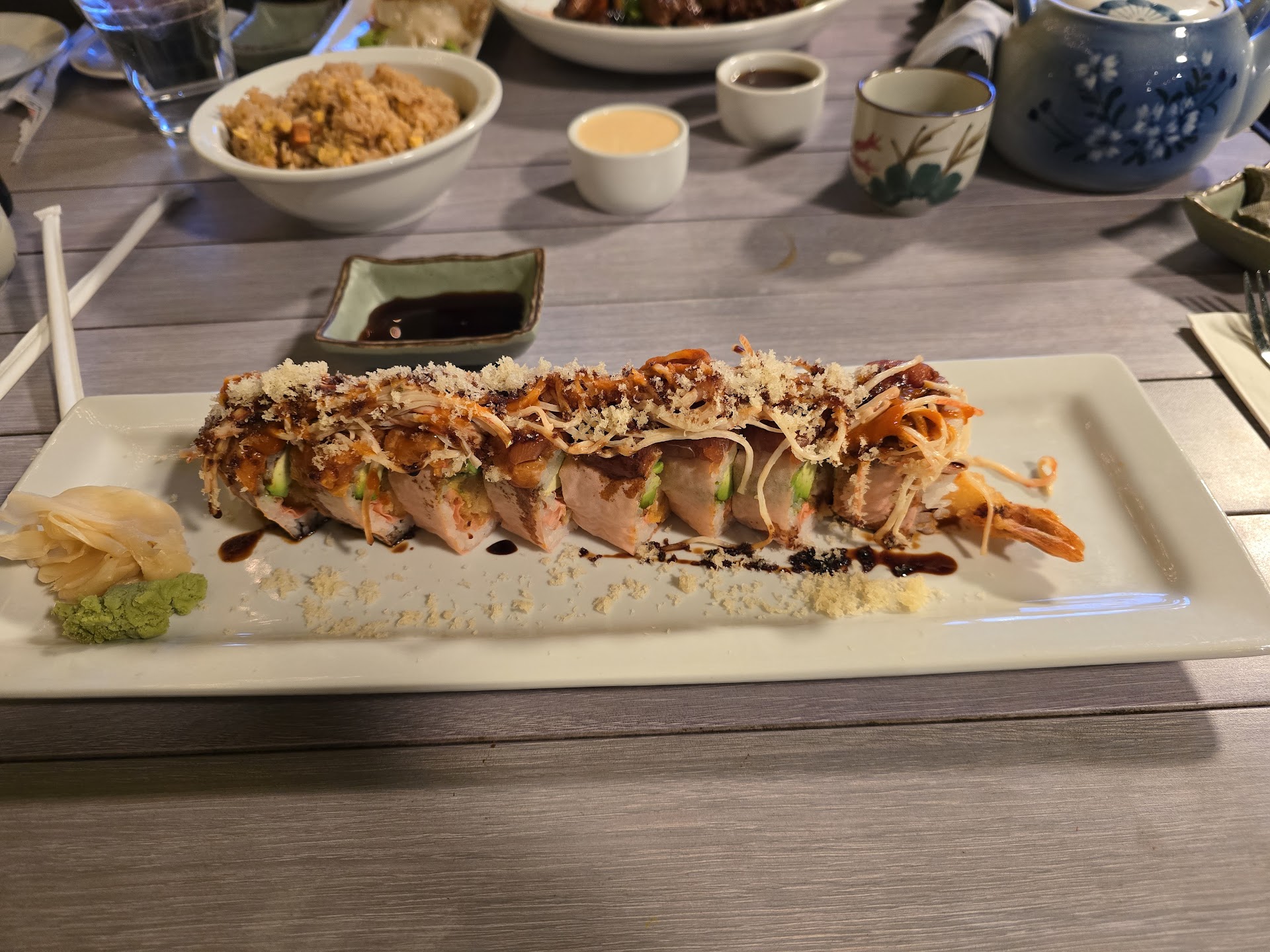 Read moreSpending our last evening in Charleston tonight. After a wonderful long weekend, this dinner was a straight s*$@ show. Our waitress was incompetent at best and seemed like she may have been on the job for 2 or 3 days. Want someone to bring you some water and take a drink order...please enjoy your wait......and it went down hill from there. I wanted a beer. How about a stella? Nope, a Kirin it is then. 10 minutes later..."uh...we cant have glass on the roof." No cans either huh? Ok, I will have a whiskey sour. Well after watching the bartender have a temper tantrum while making my drink, I new it would be tasty. I tell you what folks...that drink was so dang good, a drunk four year old would have a hard time topping it. I took one sip and left the rest sitting on the table while we awaited the food. About 25 minutes after ordering, and after prompting the waitress, my wife got her salad. A time later the food came which we requested boxes for immediately, as we brought the food back to our hotel room to eat. We waited on our food so long it got dark out, and they had to turn a spotlight on pointing directly over my wife's shoulder, and into my face, like I was expected to perform on stage. We got a good laugh out of this. People, take this review for what it's worth, one couples experience. 100 bucks for some to-go quality hibachi and sushi. I would gladly pay 3x that much for a proper dining experience for my wife and I. Before we left the waitress walked up and said "we have food runners." I totally understand...
