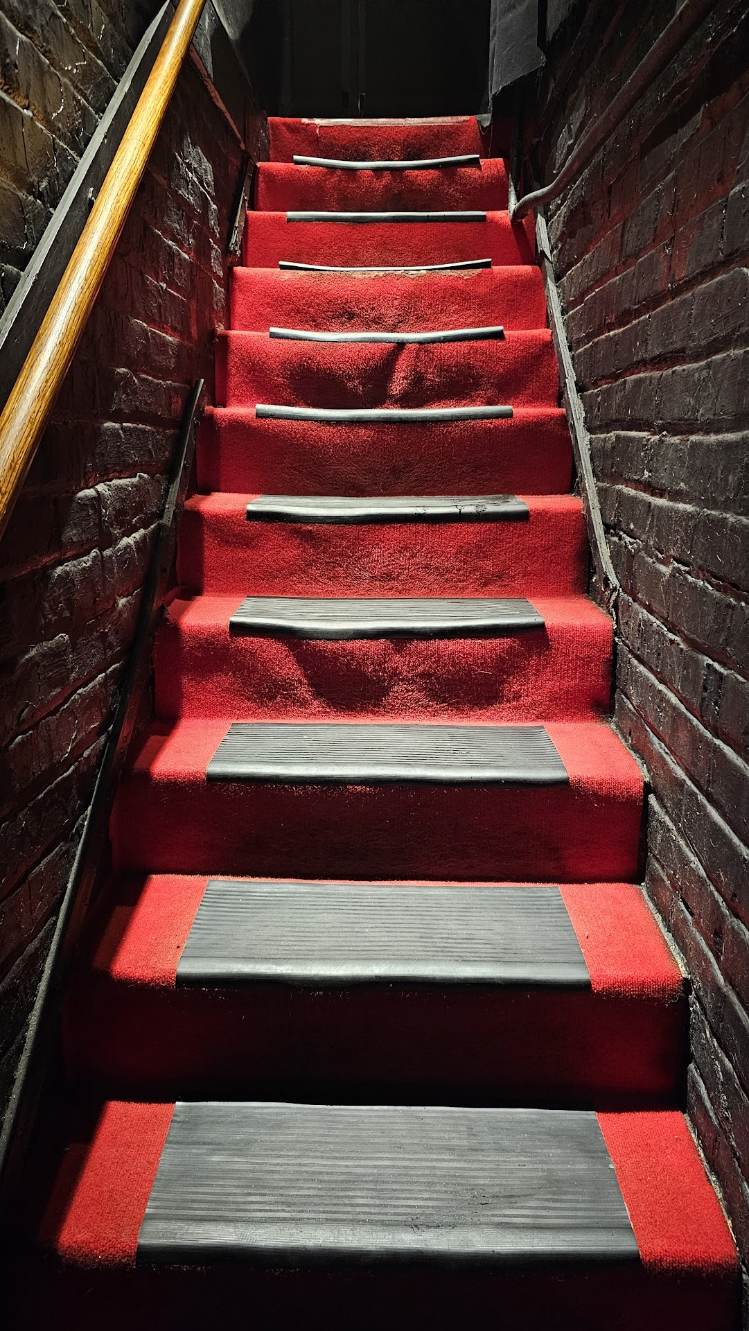 We walked down the stairs (pictured), and we were really enjoying the ambiance of the space. Sure, some of the chairs were worn, and some of the decor looked to come from TJ Maxx, and the floors were a bit sticky... it was still cute. We sat at a table, and there was a small bar in the corner with four stools that were taken. More people entered the room after, and the bartender ignored them to make sure we were the first to receive menus. The drink menus showed off a large collection of whiskeys, wines, and beers. We are cocktail people, so we each chose a cocktail, and the bartender quickly returned to take our orders. At this time, the room began to fill even more, and it was obvious that this bartender should not be working in this room alone.