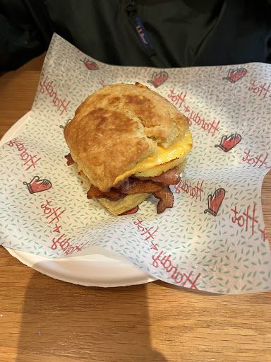 Read moreVery disappointing experience. Staff was disorganized. We ordered two biscuits and a black coffee. Our food was taken to the wrong table where it was handled by those customers. Then (after far too long) the sever realized the mistake went and took it back, handling them yet again to see what was on the biscuits. I was expecting a "Sorry! I'll be right back with new ones." What I got was handed two well-traveled community biscuits. When asked about the coffee I ordered and did not get, I watched as some form of salted caramel latte milkshake concoction was made. I assumed it was for someone else and was puzzled when it was handed to me. The interaction went downhill from there, but I finally did get a small black coffee. A pretty good one, too.