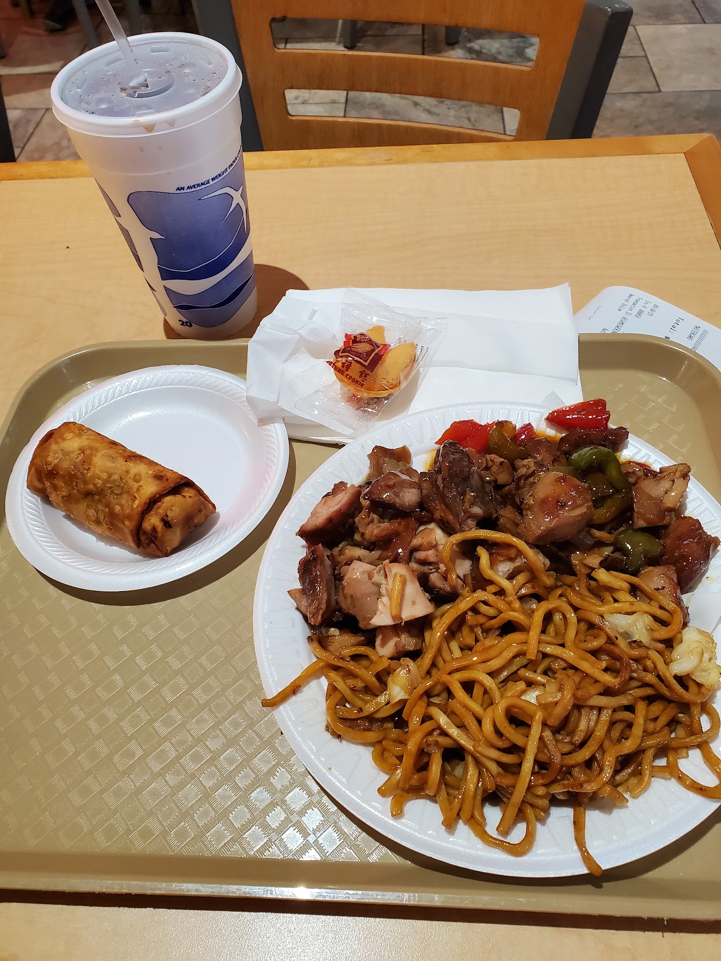 I was looking for somewhere to eat in the Charleston Central Mall. A kind woman waved me and my dad over and offered us a generous amount of free samples. It was delicious! We tried pineapple chicken, sweet pepper chicken, general tso's, hawaiian grill—I loved it. My dad and I both got rice and chicken and she was generous with portions. We also got fruit salad—she insisted she go back and prepare more fruit salad for us. It looked beautiful, the fruit was fresh, and it tasted great. Two meals, a side of an eggroll and 3 wontons, the fruit salad, and a medium drink came out to about $40. I would call that more reasonable considering the generous portions! She was so welcoming. The food...
