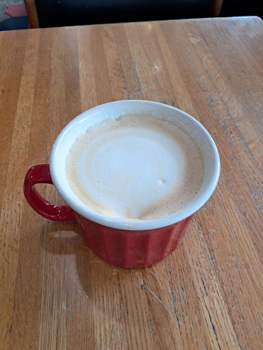 I loved this place and the cute little bookstore next door has an interior entrance which adds to the experience. The barista was very friendly and made me a delicious drink. I was half asleep while ordering and I really wanted some sort of baked good for breakfast but my social skills were still sleeping- she managed to interpret my mumblings to my fiancé and recommended their peanut butter cookies which did not disappoint. We just moved to the area but I am positive that I've found my new coffee shop. They have fun local crafts available for purchase hung up around the room; per the usge, the artists know their worth so pieces are priced...