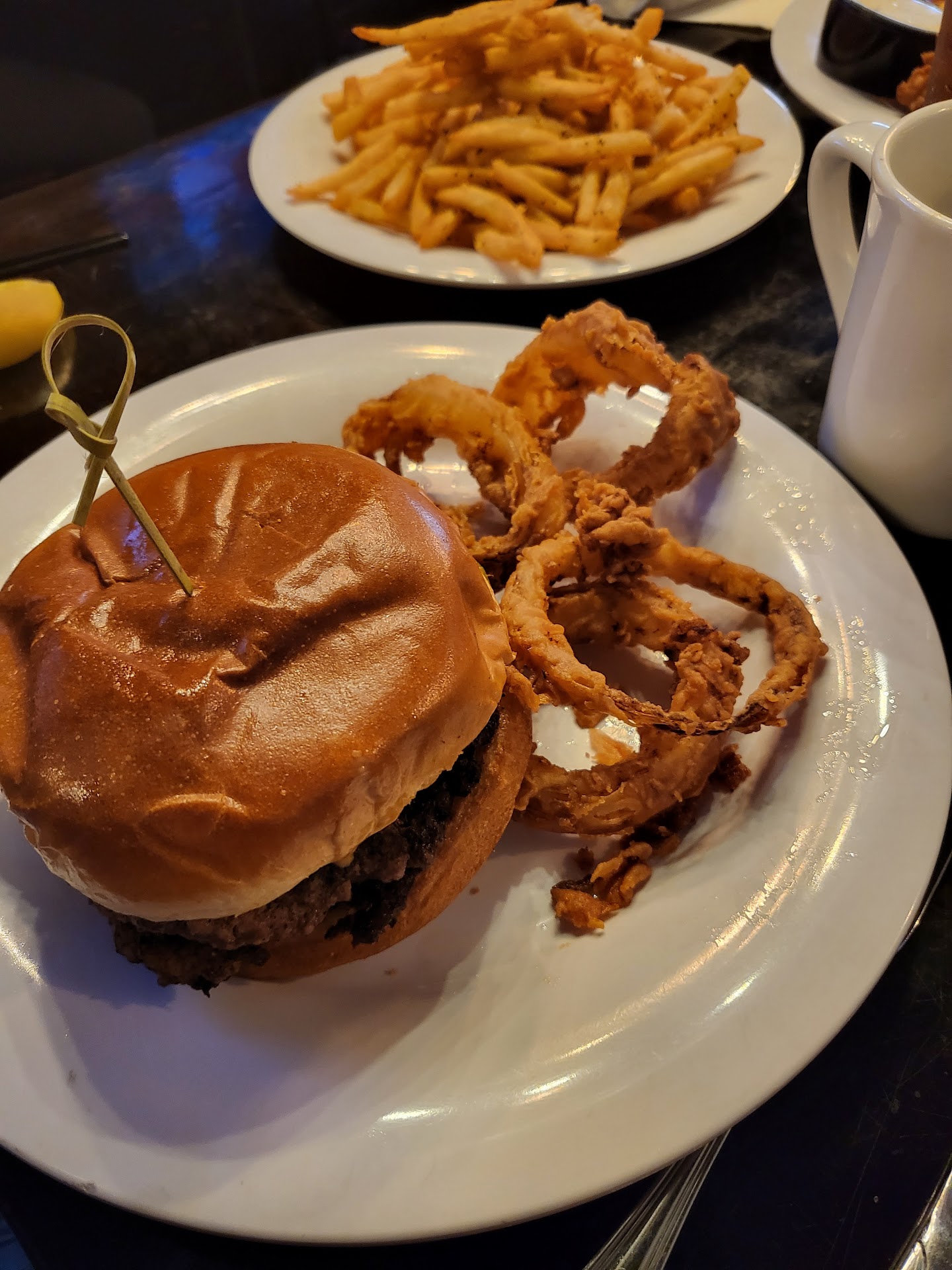 Our server never said happy Mother’s Day, but whatever. I mostly went here since they mentioned “Maillard” in relation to their burgers. We were disappointed that we missed the brunch menu, but decided to stay anyway. Our food took forever while our server loudly talked to the table next to us about where she was from, where she bought her clothing and how often she went shopping, how her career was going, which pharmaceutical drugs she used, her friend that was pregnant and how shocking having children was (we had our two young kids with us and were obviously within earshot), her previous relationship, her current relationship (in which she discussed something would happen “if he’s a good boy” and “if he buys me nice sh#t”). (Apparently this was someone that she met dining here so just a heads up if you’re interested in dating the waitstaff). This whole conversation was loud, distracting, boring, and took perhaps 10 or 15 minutes. Meanwhile ANOTHER server finally brought us the food we ordered since our server was not in the kitchen checking on it and completely forgot to bring it to us. It destroyed the greasy meal. I got a Swiss and mushroom burger without a bun. It was served on wilted lettuce. The frosé was good and the fries were crispy, but somehow two burgers, an iced tea, and two frosés came to $59 without the tip. Finally, the first frosé had no cherry, but the second did. What changed? I think our server didn’t bother but the second was brought by another server who was more detail-oriented. I don’t mind paying for quality (we went to Eli’s Place later and that was worth every penny), but this was not worth it.