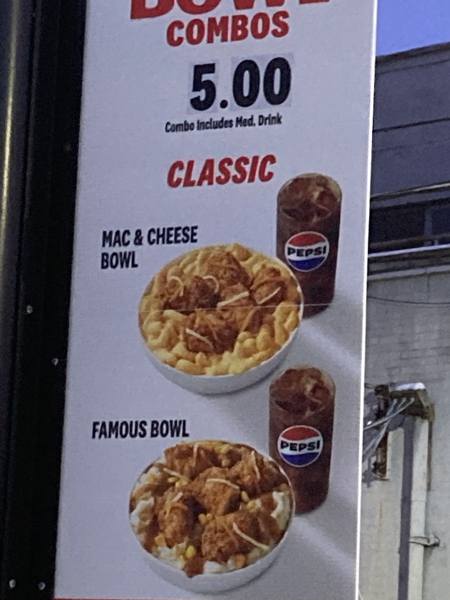 Read moreThe KFC in Kanawaha City, WV was a disaster, there was standing water in the kitchen area, trash in the floor. of the two employees I saw working, one slipped in the water and mumbled something and keep on going. The cashier was very kind and curtious despite being the only one running the register, cooking, and filling all the orders of the 4 to 6 customers standing in line to order and the 3 waiting on there order. I waited in the drive through line behind 3 other cars for 5 minutes before I decided to go in and make a take out order. After receiving my order from a menu that was about half of the advertised items. The cashier did say I could receive anything on the menu but they would have to cook it and it would take approximately 10 to 15 minutes to cook. After having to go back in side to receive the rest of my order, the cashier did offer me an extra biscuit for forgetting them and the plastic flat ware. I do have to say after settling for what they had available on the menu the food did taste good. This place could be a good place to eat with the proper supervisor, and a couple more employees. I would not recommend this place...