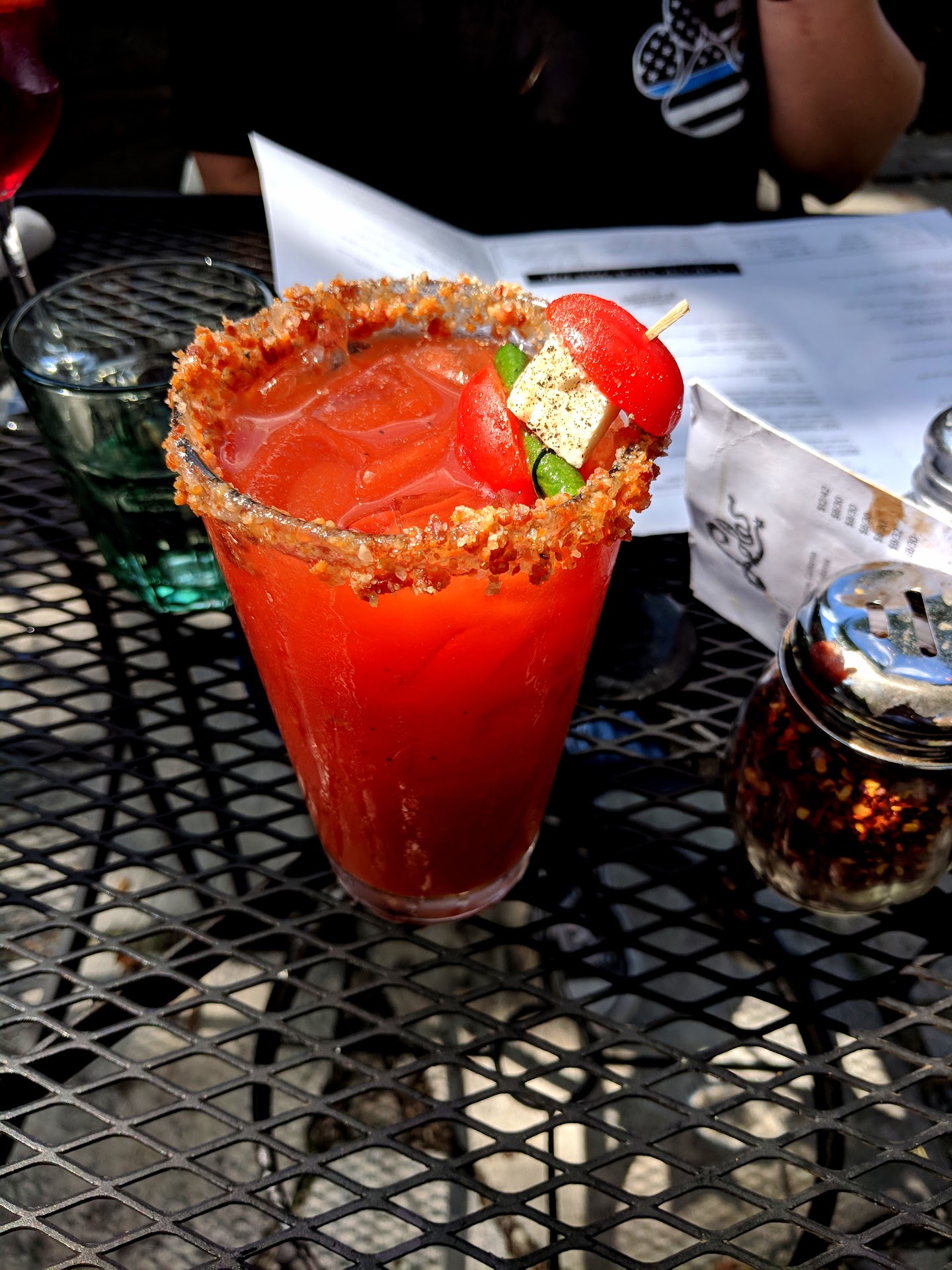 We both ordered drinks: I ordered a Bloody Mary, & she a Sangria. The Bloody Mary started as one of the best I've had, but due to the coarse salt on the rim, and some at the bottom of the glass, it became undrinkable about halfway though - waaay too salty. They did comp the drink, so no harm, no foul. My wife ordered a second Sangria, proclaiming it was the tastiest she ever had.