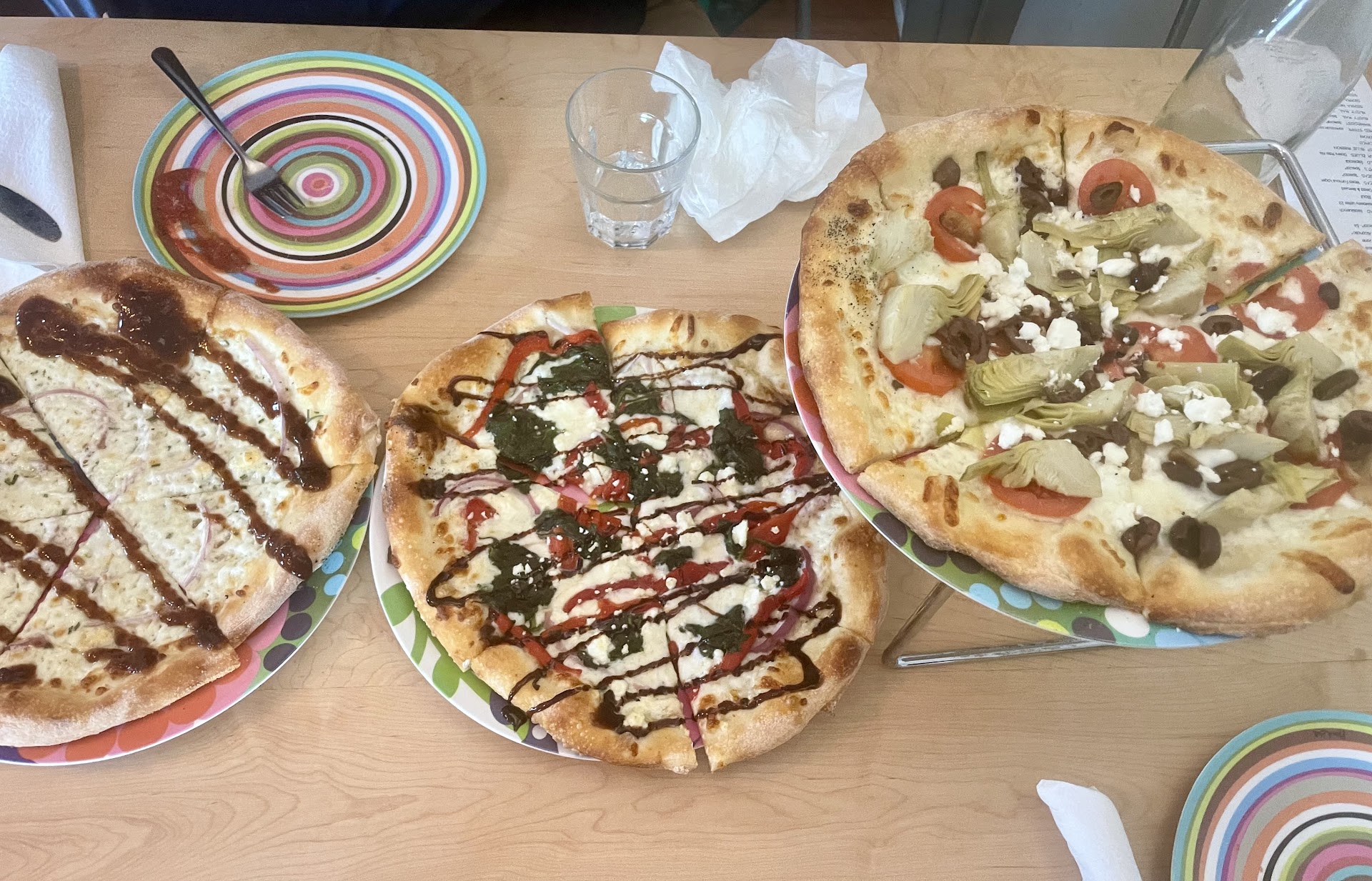 And I loved the glass water left at the table… but I agree with another reviewer that the cheap melamine plates (including what the small pizzas were served on) doesn’t match the classy upscale vibe of the things like glass water and wine etc.