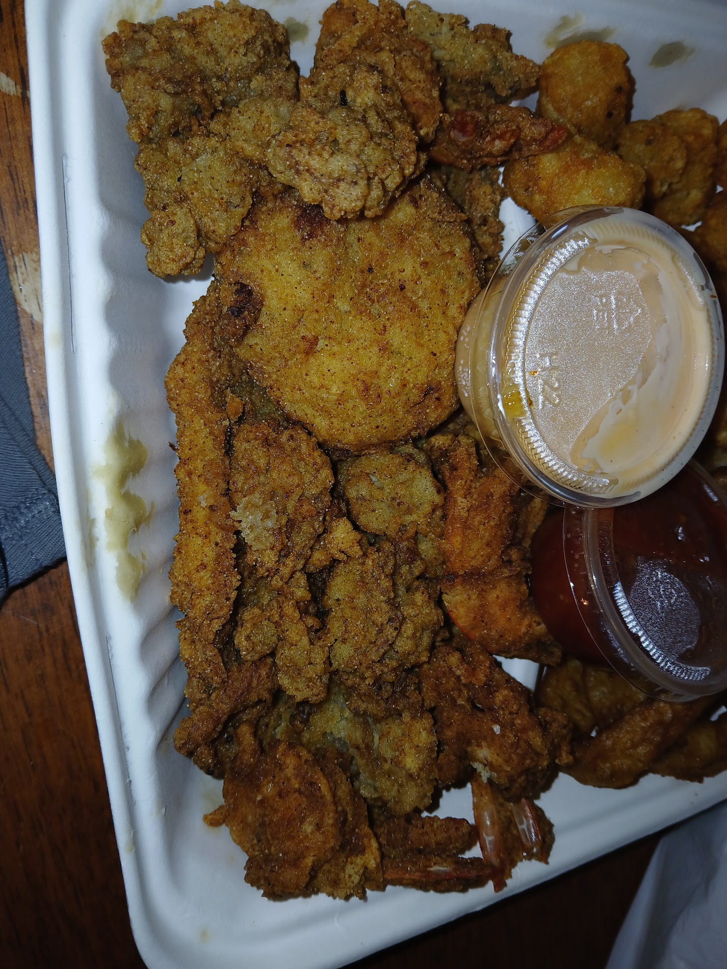 Read morePlease do not waste your time or hard earned money!! This is the worst restaurant I have been in in all my years. Ee had a party of six that came in and sat with no wait on a Saturday night in August. I now know why!! The only item that was remotely good was the fried shrimp, but let me start from the beginning. Our server greeted us and got our drink order to which none of it was correct. After multiple times, 4, she finely got them all to us after about 15 minutes. We had to remind her 3 times of the missing drinks. Once we ordered and the so called food came out, I was at a loss for words. My wife ordered the mega-platter that was anything but mega. My daughter ordered the most basic thing on the menu, a turkey sandwich, that also came out wrong. All of our side orders, mac-n-cheese butter beans red rice and fries, all came out cold. We would have said something but at this point what dis it matter nothing was going to be correct or good. I had also ordered a mixed alcoholic beverage that after drinking half of it I noticed an old piece of someone else's straw wrapper in. No one was wearing their masks properly and our server even left her dirty latex glove on the table when she took our order in the beginning. I do not for the life of me know how this place has a Class A food rating. Please beware and spend your money on somewhere better with better food and service. I'm not even going to get into the over all conditions of the place because that would take even more of my time that I wish I had not wasted with this establishment. I wish I could rate it lower than a 1!