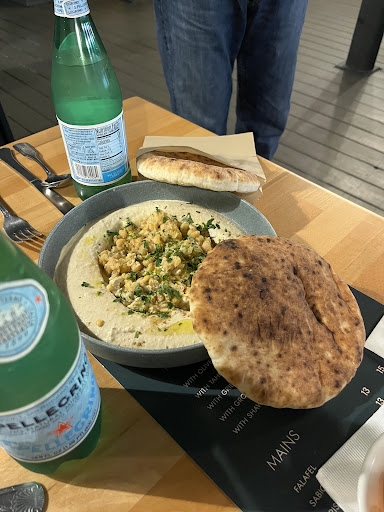 Read moreMediterranean Street Food indeed! My 1st impression is that I like the look of this restaurant, outdoors and indoor. They made it nice. I was greeted warmly by the hostess who helped me look at the menu. I had the Crispy Schnitzel on Baguette dressed with my choice of vegetables and sauces from the salad bar. The main dishes come with a small side salad of marinated carrots and pickles which I enjoyed a lot. The Schnitzel is strips cut of of crispy breaded chicken - it's good. I'll definitely be back. Overall it's clean, tasty food in a...