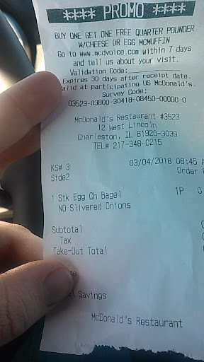 Read moreEvery time I come to the location in Charleston Illinois my chicken tenders are under temp my fries are cold and nasty I live 30 seconds away from the McDonald’s and when I ask each and every time for my food to be fresh and then I get home and it’s not there’s a real problem I’m in the drive-through right now waiting on food that I asked three times to be fresh I tasted it handed it back to the manager and said this is not fresh the fries are cold I can bet that my tenders without even touching them were probably under temp and I told her I don’t feel like getting sick And then I wanted it all remade she got snide with me and said well I can remake it but it’s going to be 8 to 10 minutes OK and remake the food so I know that me and my family are not getting ill I’ve worked in the fast food industry for 15 years I only have this problem with the fast food restaurants of Charleston Illinois it’s a little sad and disconcerting to be honest I’m surprised at the franchise owners who are well-versed in this And have not done so if you want a bad experience cold and nasty food and customer service team who doesn’t care about you and your family or good safety practices in a restaurant by all means come to the Mcdonals on Lincoln Road in...