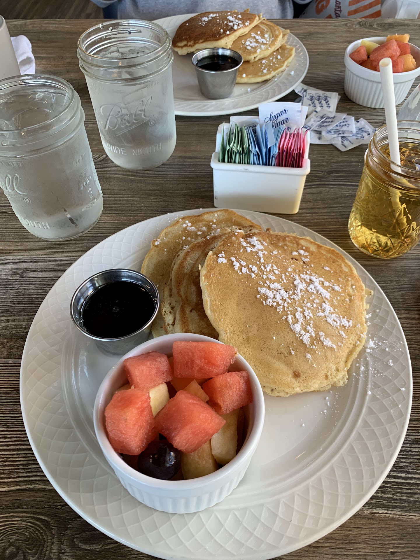 We ordered two stacks of adult pancakes (3 each), french toast (consisted of 2 slices), and the breakfast potato (i don’t remember the name honestly but it had 2 eggs, bacon, sausages, potatoes, etc). Everything was DELICIOUS, the pancakes were cooked perfectly, with the edges a bit crispy. The french toast was delicious and the sausages were HEAVENLY. We also had an English muffin as a side and it was great—we ordered a lot of sweet stuff and the English muffin, being salty, was a great combo.