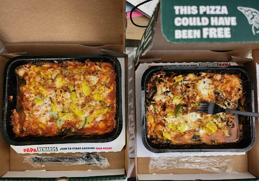 I wish I would’ve known that this company uses DoorDash. I would’ve never ordered my daddy’s pizza from here if I knew. So, because of DoorDash, I’m giving them 1 stars. The dudes working in the store were nice, fast, and just as confused as I was when I brought back my pizzas. I was on vacation with my family and we ordered these pizzas. I called and placed the order at 6:43 pm. The guys said 30 to 35 mins. I said ok. I waited an hour and called back and the guy said it had been delivered. I said it has not. He checked and he said well here it says it’s been marked delivered. I told him that my daddy has been having issues with his heart and hadn’t eaten all and wanted his pizza. He said he would remake it and send it out STAT. We waited another hour and an extra 30 mins. We walk to the lobby and they finally tell us the pizza is here. I open the boxes and find this. 2 pieces are missing out of the first boxes. So, I close all 4 boxes and take them to the business. I show the manager of the night. He agrees this is horrible. Makes 2 MORE PIZZAS. While we are talking a DoorDasher walks in. I ask if she was the one who ate my pizza and she looked at me and said no, if you were to have gotten something from me it wouldn’t have arrived like that. So, she grabs another delivery and walks out. My mama is in the car and sees the girl just dying laughing as the girl gets into her car. We get our pizzas and fly back to the hotel to feed our kids and poor daddy. I get to the Hilton and ask the front desk was the delivery driver a girl and she said yes. I then stated what clothes she had on and asked the front and she described to me exactly what the driver was wearing. It was the lady I had seen in the papa johns. I will never use another papa johns until they stop...