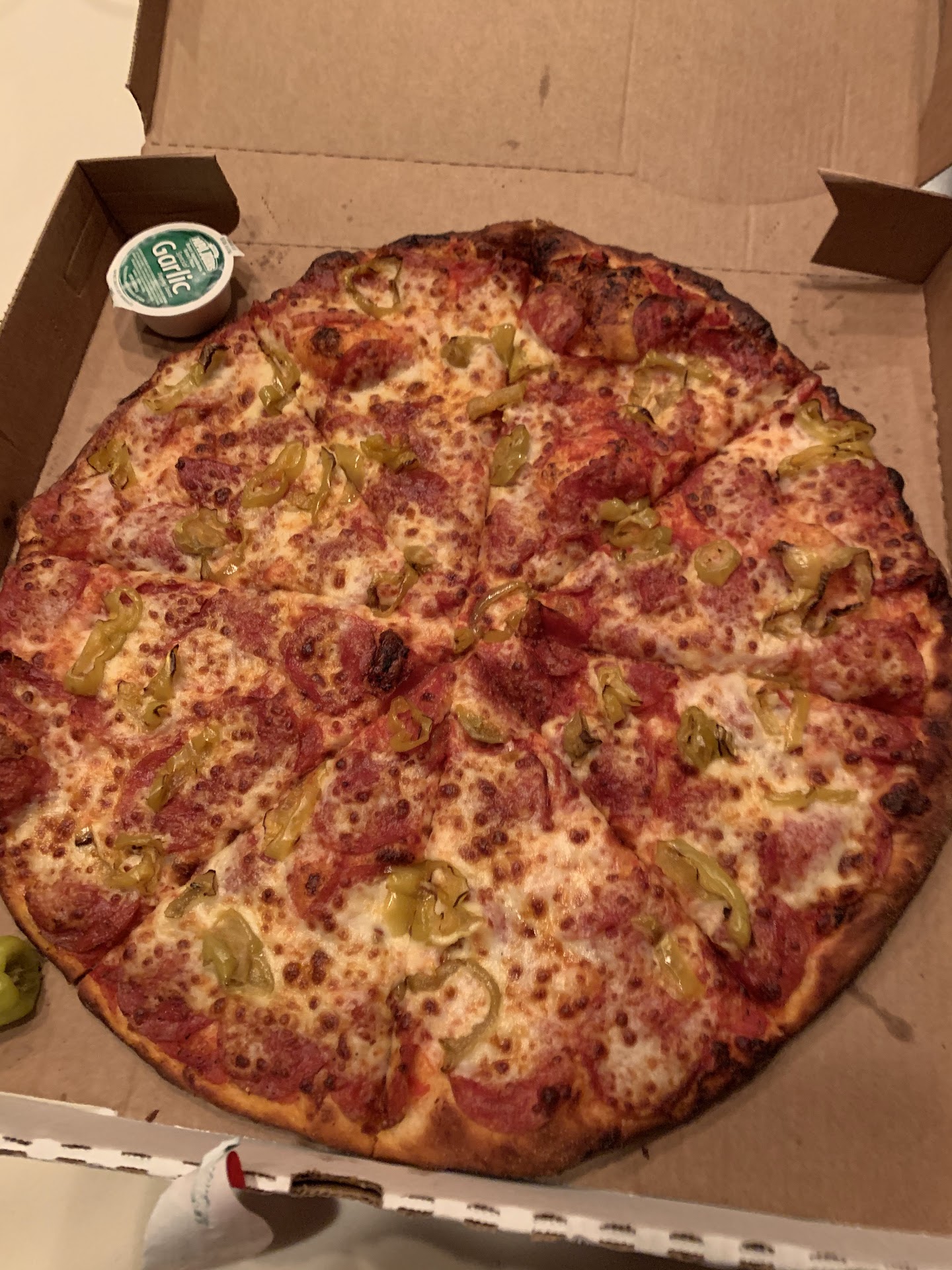 Read moreMy pizza is an order delivered by DoorDash. The delivery was good. The pizza is just okay. Shaqaroni with banana peppers. There was an option for regular cook or well done. I chose the well. It was still very very soft. I thought maybe it would give it more chew. The banana peppers were just dried skin with out any pepper remaining. The bottom of the pizza was black. Didn’t really taste burnt but dark black. The commercial shows pepperoni on top of the cheese. The cheese was on top of the pepperoni. Peppers were on top. Shaq says the toppings go all the way to the edge. Pretty good on this version. Check out the pic. Anyway this was convenient for a delivery and just okay. Papa John’s should think about refitting there shops with a conventional slate oven. Shaq if you see this tell them to get real ovens. And it wasn’t cut on any slice...