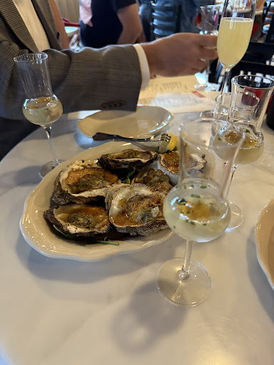 We were super excited to try this new restaurant! We had reservations, they sat us at a high top. We started with French 75s, when we were waiting to be seated I saw several people had cocktails so I assumed they would be good. French 75s were not very good. They had way too much lemon juice and too much gin, needed more prosecco. The balance was very off. We ordered the prosecco on tap afterwards and that was much better. We started with the wood-fired oysters and oyster shooters. The wood-fired oysters were VERY good, very savory and had lots of flavor. Cooked to perfection. On the other hand, the oyster shooters were not very good (and we are raw oyster lovers). The menu says that they had lemon and chili oil, which sounds good, but when they brought them out they said they had prosecco. We tried them and were optimistic, but they had a sweet finish on them which did not pair well with the oyster flavor itself. It would’ve been much better if it had been kept on the savory side, maybe leaned more into a mignonette flavor? I had the mussels and added pasta, they were cooked in a white wine saffron broth. Honestly, it had WAY too much rosemary and the broth did not taste like saffron at all. The broth tasted like a chicken broth with lots of herbs. Still very good, but did not taste like the description on the menu and had way too much rosemary. Bread tasted like burnt smoked grill, even when I put it in the broth it continued to taste like burnt grill. I did ask for some Parmesan to go on the noodles (once I reached the noodles), and I kept having to ask for more as they kept bringing a small tablespoon amount. My partner ordered the 20 layer lasagna which was fabulous. However, it did not taste like bolognese sauce even though it said it had bolognese, tasted like marinara with meat sauce. The salad with the lasagna was perfectly balanced and delicious. The tiramisu cheesecake looks super good but the lady finger was ROCK HARD. Just tasted like regular cheesecake, the tiramisu flavor was only in the sauce on the bottom of the plate.