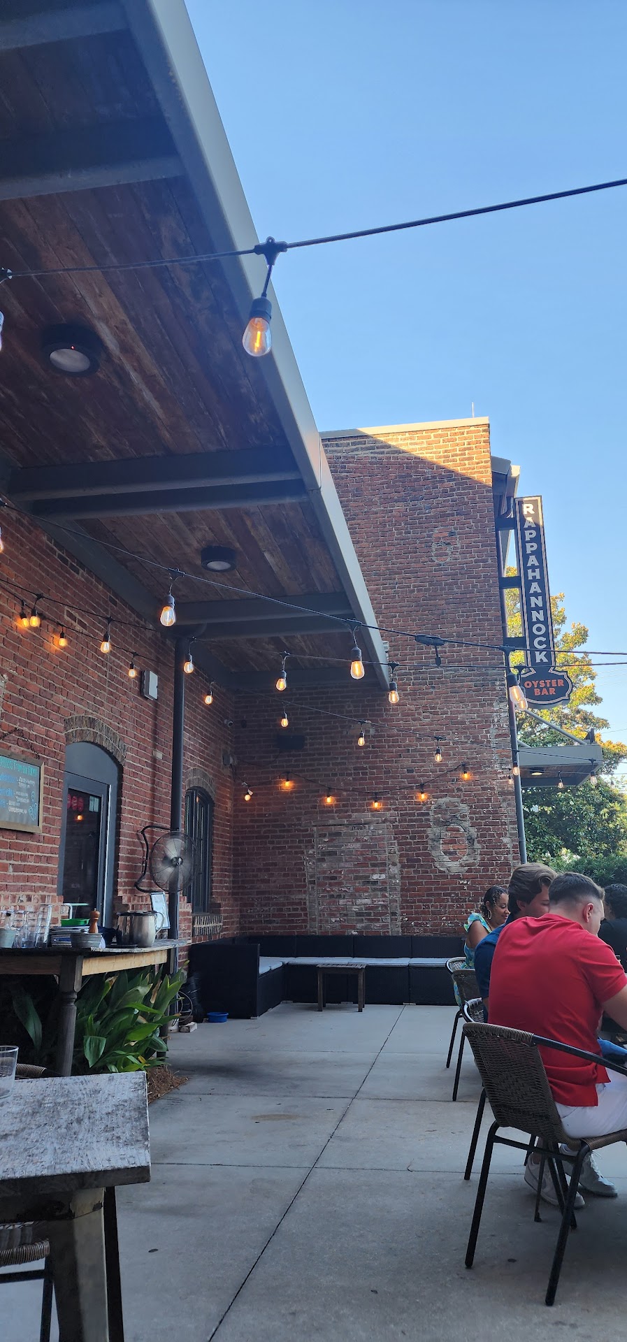 Nestled casually in the corner off East Bay Street, Rappahannock Oyster Bar is a surprising treat. The building was previously a cigar factory, so imagine historic brick and metal industrial softened by beautiful lighting, cozy tables, and a romantic history.