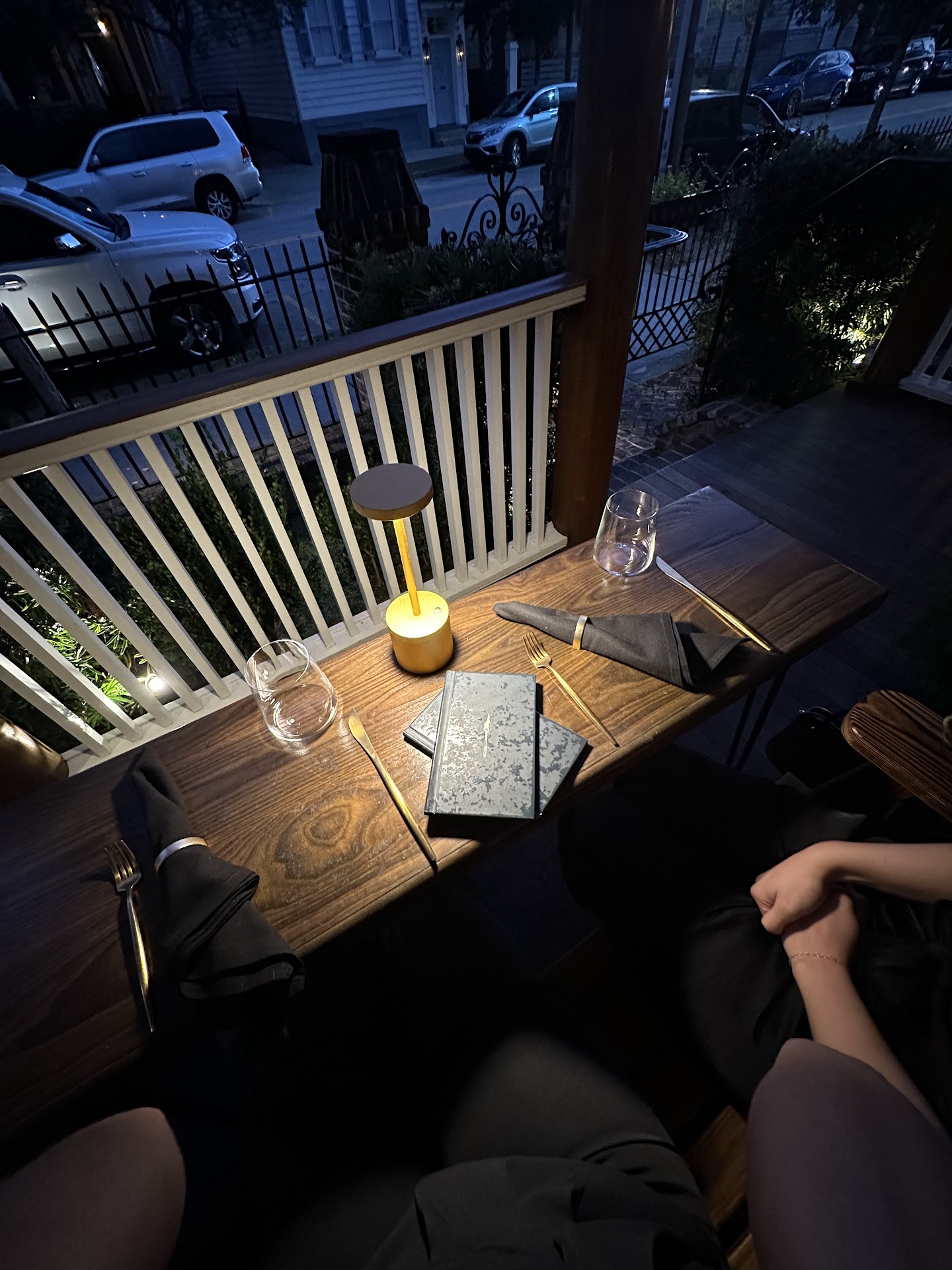 Read moreFolks, buckle up for this love letter of a review. For those that want a quick run down: this is my new favorite restaurant in Charleston. Decadent. Incredible service. The details- I will never get over the details. You won't regret going. 5 star experience with a genuine and approachable staff. For those that was the nitty gritty: SERVICE: I am beyond impressed. From the moment you check in with Luca, the friendliest, best dressed guy ever, you are treated like the guest of honor. You are addressed by name and Luca takes a moment to chat with you and genuinely get to know you before taking you on a tour of the wood-fire kitchen. The guests in front of us were celebrating anniversaries and birthdays and were greeted with LONG STEM ROSES and/or glasses of champagne. I cannot make this up. Once you are seated, your water glass never gets below half full, your napkin is always folded, every staff member is polite but truly kind and genuine when they stop by your table. There is no hustle and bustle yet the efficiency is out of this world. Our waiter Steven (Stephen?) was so patient, attentive, and helpful with menu navigation- I will request to be in his section in the future. I asked Luca about the playlist and his response was "I'll email it to you, we have your email on file." By far the best dining/service experience I have ever had. FOOD & DRINKS: Decadent. Great portions. I want to take a moment to say that this is a splurge dinner, but I appreciated how the starters and a la carte sides are shareable, so truly worth every penny. The ribeye was cooked to perfection. The scallops melted in your mouth. The carrots will live in my head rent free for the foreseeable future. One thing that really impressed me was that while waiting to use the restroom, the head chef took time to chat with me about the meal and even where I am from. He was so humble and approachable and I appreciated the conversation. The old fashioned I had was something dreams are made of: strong yet balanced. ATMOSPHERE: You know you are at an elevated restaurant but its without the stuffiness. You feel relaxed with low lighting and warm wood tones throughout. They captured the true Charleston charm with string lights and gas lanterns everywhere but the fire and warmth inside makes you feel cozy and completely at ease. And the best part: you don't have to yell. This Restaurant is somewhere I will be bringing my parents, which should tell you a lot considering my Dad will walk out of a place if its too loud. The music is relaxing and at a low level. Fans are scattered throughout but also very quiet.