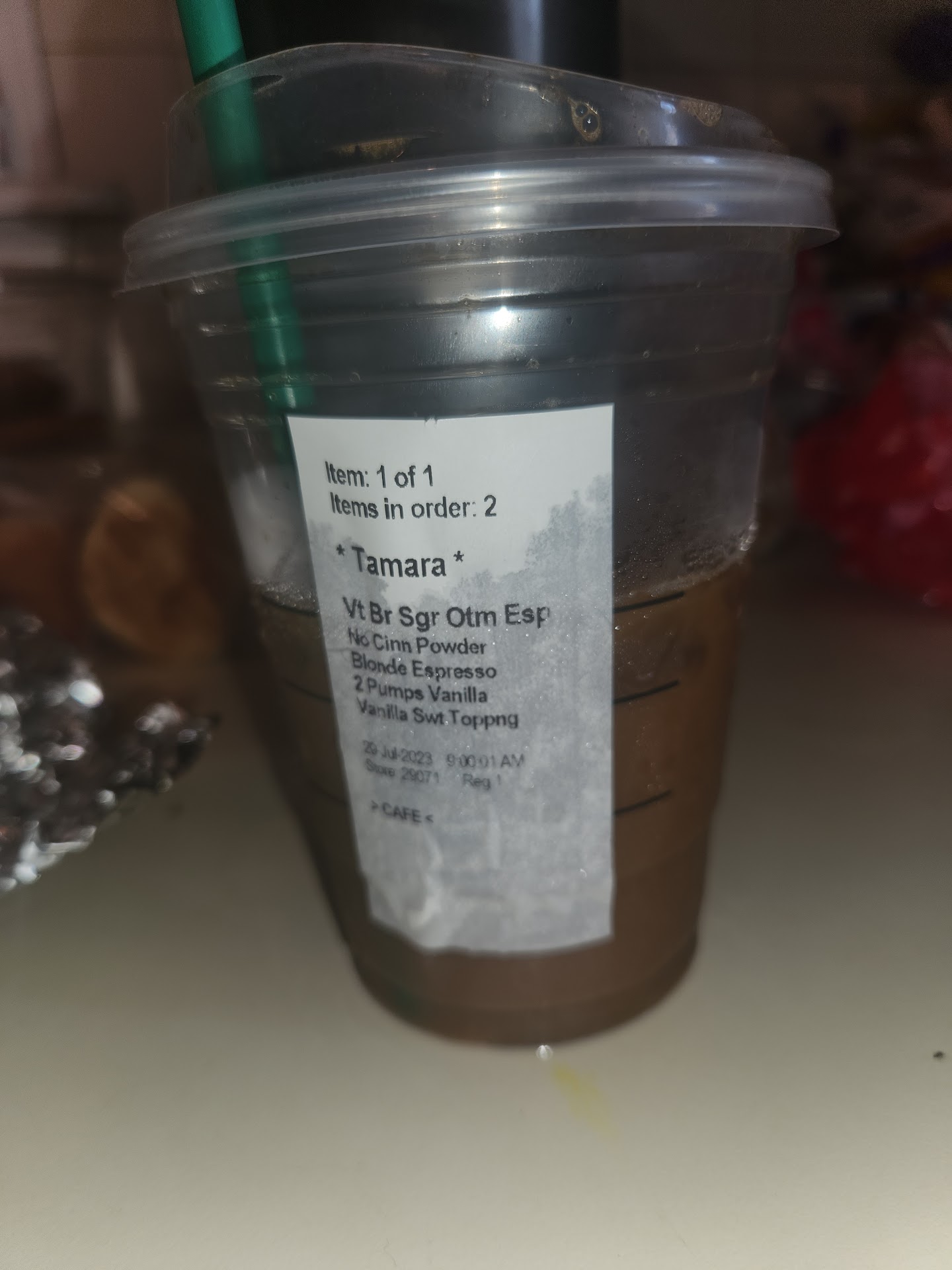Read more3 staff working and still couldn't get my order right. Ordered a new Carmel Crunch Frappuccino. First they made it with Soy Milk, which I would never drink, and then made a Cinnamon Frappe. When I asked about it, they acted as if it was normal. They wouldn't even look at me and one just said, "I have no idea". Terrible service! Every other Starbucks is able to handle a lobby full of customers plus a drive through and online orders while still giving great service. This one clearly needs...
