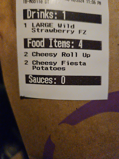 Read moreI apologize it's long... My experience last night. Ordered burrito, tacos, chicken quesadilla Pepsi and Baja blast. $21.56, at window she asked for $51.57, I stated that's wrong then it was corrected. I paid, she handed me my food and said good bye. I asked what about my drinks? She stated I gave them to you, no, looked in my truck at the empty cup holder and then went to get the drinks. Got home and now one thing my Fiance wanted was the chicken quesadilla and it wasn't in the bag. I wanted to go back but, was orver riding by her. We shared the tacos.