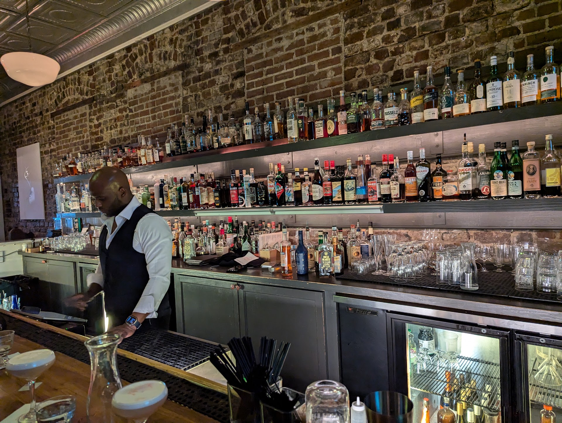 Read moreMy colleagues and I went to The Belmont tonight. We had delicious food earlier in the evening and many of us ordered drinks. Later in the evening, we returned and some people in the party ordered drinks. A couple people in our party requested water and the waiter answered affirmatively, saying he'd bring water. After waiting and not receiving water, a member of our group asked a second time for water. The waiter replied saying "We're a business." After exchanging viewpoints, the waiter maintained that he would not serve us water, even though we patronized the establishment earlier in the evening and members of our group were currently spending money at The Belmont. As a small group of five, at a mildly busy establishment with no line that night, this behavior from the waiter was unprofessional and unwarranted. My colleagues and I intend to not patronize this establishment...