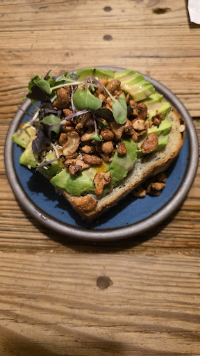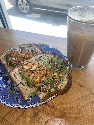 This place is such a hidden gem and deserves even more than 5 stars! The food is so unique and tasty, tons of options for vegans/vegetarians and I'm pretty sure I saw some GF options as well! I LOVE the Grasshopper toast. It's not too heavy, super flavorful, and healthy! My boyfriend loves the Harbinger Breakfast Sandwich. It's good for when you're in the mood for something more substantial, and the white cheddar pimento cheese is incredible! I've had tons of their baked goods, all fantastic. Their beverages are just as good as well. I love the Tumeric Chai Latte (both hot and iced). Their cafe itself is also super cute and cozy and worth going off the beaten path to. My go to neighborhood cafe :)
