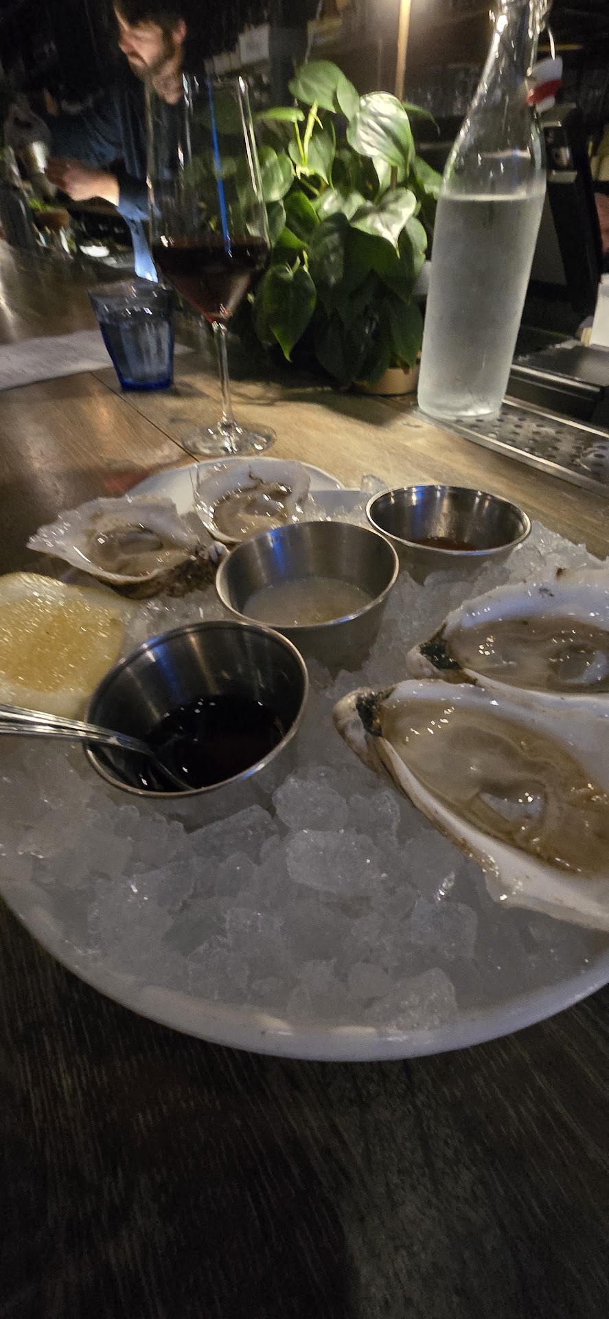 Ā Ā Ā Read moreI was a single traveler to Charleston for the first time. Everyone I talked to said I needed to check out The Ordinary. So I did. The food was great. First thing I noticed was that there were no TVs at the bar, which was cool. I had three different oysters, steak tartare, and the gumbo. Let me tell you, the food was GOOD. However, the service did not match. When I sat down at the bar, there were four bartenders. One on service, two manning the rail and then someone in a suit coat that looked to be helping (maybe the bar manager or something). It took about 5 minutes to be greeted (at the bar). The people next to me on both sides had gotten their food while I was waiting to be greeted. I expected one of the bartenders, while busy, to tap the bar and say, āIāll be right with you.ā But that did not happen. The bartender (longish, brown haired male maybe named Keith?) suggested the oysters, answered my cocktail questions, all were delicious. Then, I ordered from another bartender (brown shortish/long hair who looks like Keithās cousin or vice versa) took my food order. Iām pretty sure he forgot to ring it in, because I hadnāt gotten silverware or a set up and it took a long time. Then, he asked me how I was doing and I said fine, even though I had been waiting about 15 minutes for my raw beef and already prepared gumbo that just needed to be scooped into a bowl - and he got an āoh crapā look in his eyes. He went to the computer, came back over and said my food would be out shortly. The gumbo came shortly after followed by the tartar (I asked for the tartare to come out first). Overall, the service was meh but the food was great. As a single diner this is a risk, however, Iāve been in the restaurant industry for 15 years and believe that the every single table or guest should be treated like the very first guest. One highlight was the blonde girl with space buns who was working service, she came over to check on me. Idk if she caught a vibe but I am grateful that she did it! If I came back, itād be at a table...