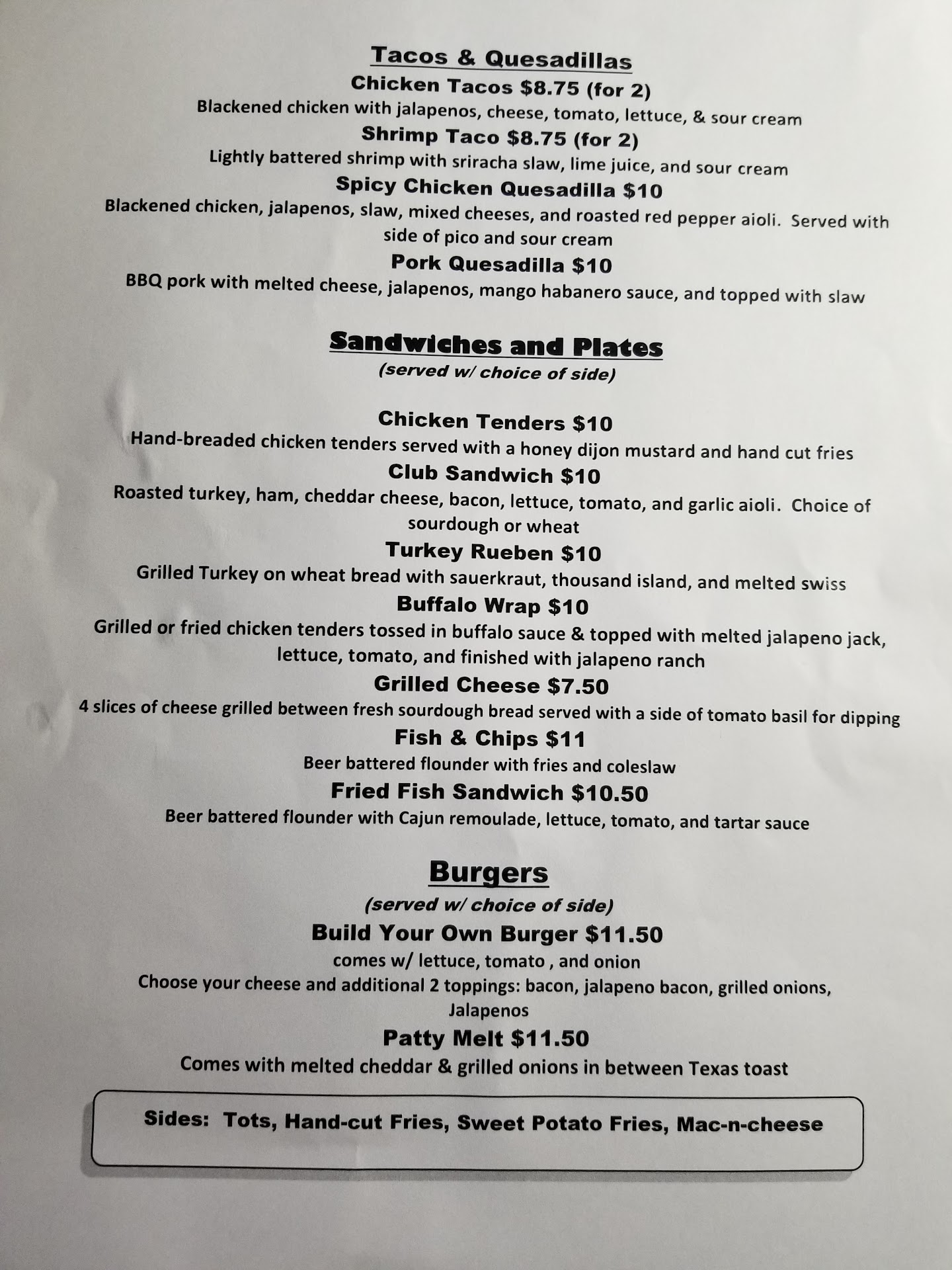 Read moreI had a different experience than the person I dined with at this place. The atmosphere was great. It was a little loud, but that's to be expected, and good for a bar. We decided to dine here based on reviews and photos online, but upon arrival we could not find anything resembling what we saw online on the menu. Our server explained that what we saw online was most likely a "brunch special item." We made our selections for entrees and an appetizer from the menu. The appetizer, buffalo chicken dip, arrived very quickly and was very tasty. We both agreed that the appetizer was good. When the entrees arrived, that's when our experiences parted ways. I ordered fish & chips with a twist, sweet potato fries instead of regular fries. My fish filet seemed to be a large, well seasoned, freshly battered, not frozen, piece of fish which was moist and flaky and tasted great. My sweet potato fries were perfectly cooked, crispy on the outside and soft and tender on the inside. My fiance ordered a burger and regular fries. His comments about his meal were "the fries were cold and the burger was dry " Overall, I was pleased, he was disappointed. But I'd return to try...