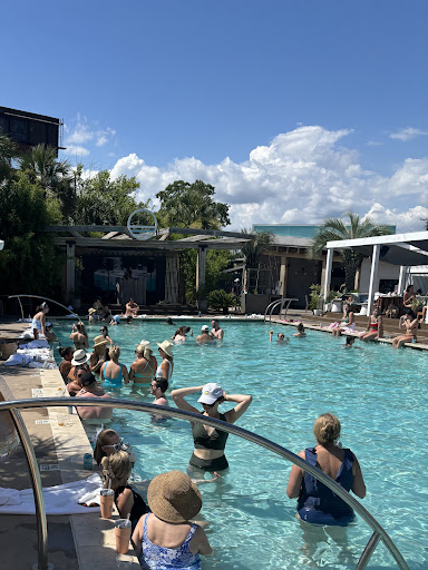 Read moreThis place has all the potential to be good but just wasn't. We got a free day pass through our AirBNB and they make it sound great (bougie, almost spa-like) on the website, so we were really looking forward to it, but it was far from it. The pool didn't feel like it was heated, but no big deal. You get used to it quickly. The place was dead though, and, after experiencing it, I could see why. Besides me and my husband, there just were five girls celebrating a bachelorette party and two other random guys. There were two bartenders, and lots of other staff wondering around, so they were definitely adequately staffed. Kaleb, our bartender, was so nice. He was the highlight. But my first drink, a strawberry daquiri, tasted like pure syrup with no alcohol. Kaleb was happy to top off the top to make it drinkable, so ok, we're good. Then we ordered some fish tacos with fries, and not only were they not good, but both the tacos and fries were COLD! Not sure how that happens when they're so well staffed, but Kaleb was happy to take them back and re-fire them. Sadly, only the fries were warm when they came back. Tacos were still cold and flavorless. Kaleb seemed like he genuinely felt bad and offered me a free cocktail to compensate, which was super nice. Like I said, he was the only thing that made the place semi-redeemable. I also appreciated that he informed me when I checked out that the tip had already been included. Most servers never point that out and often end up getting double tipped, which I find extremely dishonest and frustrating. I'm not a fan of places adding tips to begin with though, and that might be a deal breaker for me, in and of itself. Pay your staff appropriately and, IF they EARN a tip, they'll get one! The idea that tips are received even if service is bad really ticks me off, and would keep me from coming back. It provides no incentive for servers to provide good service. Incidentally, Kaleb was so nice, that I tipped him another $5.00 on top of the 20% ($5.40) tip that was already included. One last point is that it's right by the rail road, so it's a bit noisy, but something you could probably overlook without all of the...