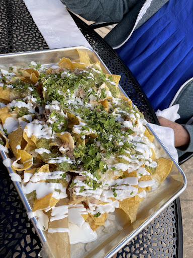 This was someplace we passed a number of times while we were walking around town and my husband really wanted to try it. I wanted a club sandwich. Couldn't find a good restaurant in town that fit our needs for a table of 8. Ended up where my husband originally wanted to eat anyways. They were very accommodating with our large party. The only problem is that it was very rustic seating. It was a long wood and iron table similar to a picnic table that had three tiny metal chairs on one side and a backless bench on the other. I am slightly larger currently since I just had a baby and the tiny metal chairs were super uncomfortable and there was no way I was going to sit on the backless bench with my bad back. We made the kids sit on the bench, but they all fussed. We ordered our food but the server acted like we had been there before and seemed slightly perturbed we asked questions about the food. I ordered the grilled shrimp tacos without cheese or salsa verde and she got it right. They were yummy, but there were only three small shrimp in each taco. Seemed it would have been better if they were cut up and dispersed better. Very unique flavors and fresh ingredients. My husband got the nachos and they were enormous. There was nothing left of them when he finished. The kids had a taco plate and quesadillas. Both kids meals came with a small side of Mexican rice. My kids wouldn't touch the rice, so the adults ate it. Hot tamale! It was so spicy it made my nose run and my throat tingle, lol. I can't believe they serve that to children. There is no way in hell my kids would have been okay after eating that, which I'm glad they didn't attempt it. But they did eat every bite of their food, so that's a good sign. My father in law got a shredded beef taco and he loved it, said it completely filled him up. My mother in law got one grilled shrimp taco and one chicken taco, she enjoyed both. The place is decorated nicely, with cool colorful artwork and lots of pops of vibrant colors, like a cobalt blue wall and orange walls. It seems maybe at one point it was a garage and it was repurposed into a restaurant, because it has a garage door that was open into an outdoor seating area with a fireplace. Nice ambiance. The server seemed to warm up to us, even though my kids were being...