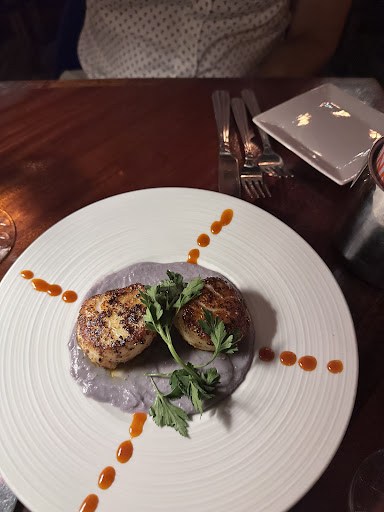 From the valet on, every thing was perfect! The proprietor was at the host stand, apparently I made our reservation at the wrong Cuvee`, some other country! But she said if we could work us in. Thank goodness because I had researched that restaurant before going to St. Thomas. My son, daughter in law and I are all foodies and this was our MUST GO TO restaurant in St. Thomas! We went to the bar where Mac took good care of us, he was warm and engaging. Knowledgeable, everything you expect of the perfect bartender! The wine list was 👌🏻! I had a delicious Pinot Noir from the Williamette Valley! Jennifer had a glass of my wine. My son really liked drinking all local beers and Mac picked a great one. She seated us quicker than expected! A wonderful table out front on the patio, we were so happy! Excellent menu! I had a pan seared foie gras and my kids are lobster bisque. For our entrees, they had Surf and Turf for 2. I chose the Lobster Thermador over Pappadelle pasta. I had pan seared scallops on the side. The food was mouth watering. Everything cooked to perfection. Their steak was on point temperature wise and very tender! My scallops plump and juicy! The lobster so sweet and tasty, I never made it to the pasta! For dessert I chose Chocolate Mousse. My daughter in law and I had espresso martinis. She had never had one. I think my son had another beer, right now I can't remember because I'm remembering how perfect mine was! The martinis were yummy! I didn't even eat eat half of my food! The kids ( they're not children here lol) had food leftover too. Our service was on point as well. Wonderful ambiance, excellent service, mouth watering food! Couldn't ask for a better experience! It was a perfect night to be on the patio. Slight breeze, looking into a small harbor, lights dotting the hills. I dare say it was the best meal I've ever had, but it is/was! A must try if in St. Thomas whether it be intimate dinner or dinner with family or friends. Very inviting and...