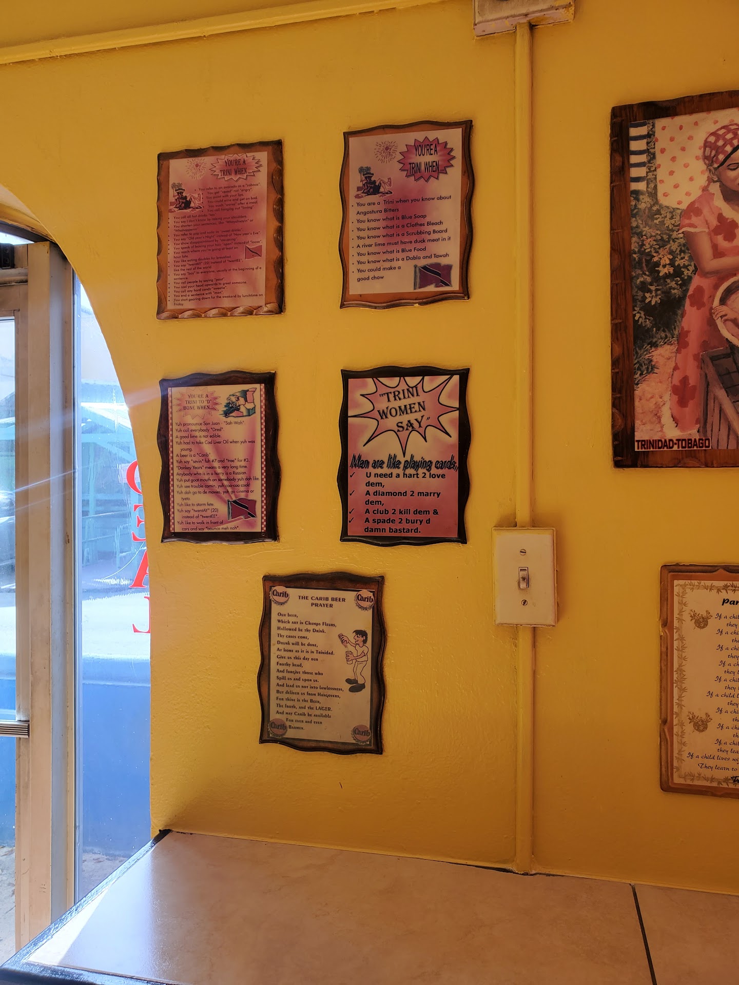 This is a very cute, family feel type of restaurant and service is awesome. The counter guys seem to know the entire town. "Roti" here is actually a massive 3 lb. burrito stuffed with curried meat (Chicken, beef, goat, shrimp, or conch) and veggies of your choice. One "Roti" can feed two adults and a small child, and it should because meat Roti's range between $12-$15 each. You can also select your spice level, medium, hot or spicy. We stick with medium, and don't want to find out of what "hot" or "spicy" is. The counter guys will warn you that medium is a good degree of spicy.