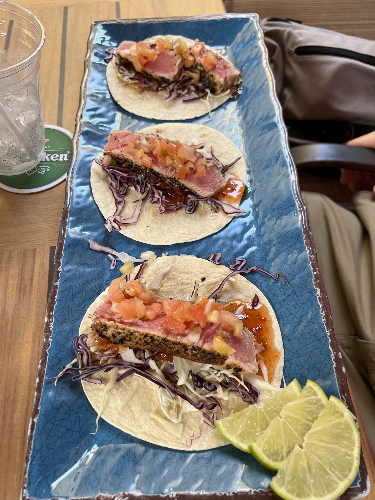 Read moreRemember The Mamas and The Papas song with the lyric "No one's getting fat except Mama Cass"? The actual title of that song was "Creque Alley" and if you visit the wonderful little Side Street Pub, you can actually eat in that exact spot! It's common for business owners in downtown St Thomas to stand outside their stores to invite customers inside to see what they have to offer. Kim welcomed us inside and we were absolutely not disappointed by the simple fare or the few choices on their menu. We had Ahi Tuna Tacos and the chicken sandwich which was served with a bag of Wise potato chips. The food and especially the warm hospitality made this little stop memorable. Locals might be fussy gourmands but the Side Street Pub is perfect for day tripping cruise ship passengers in the middle of a shopping spree. I intend to go back there next time I want a light lunch, good drinks and friendly atmosphere....